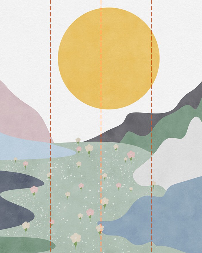 Fotomurales Acuarela de una puesta de sol sobre una masa de agua