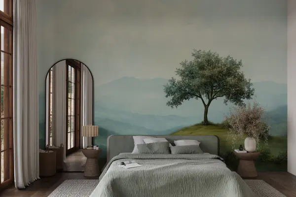 Fotomurales Bosque de hoja perenne en tonos de acuarela