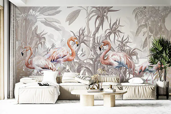 Fotomurales Grupo de flamencos rosas en un bosque