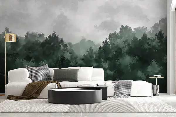 Fotomurales Bosque de hoja perenne en tonos de acuarela
