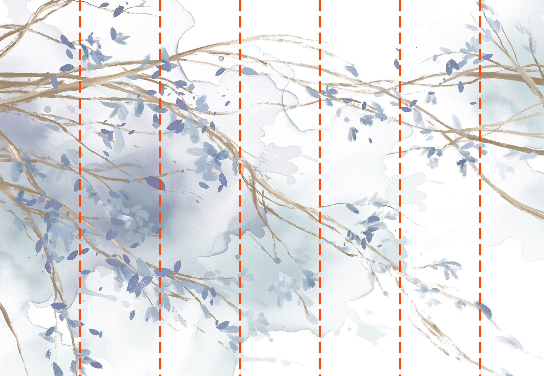 Fotomurales Acuarela de una rama de árbol con hojas azules