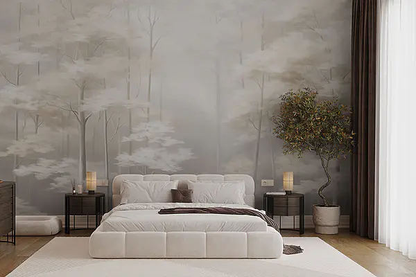 Fotomurales Bosque de hoja perenne en tonos de acuarela
