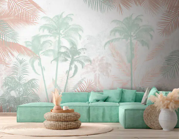 Fotomurales Suaves hojas de palmera sobre fondo pastel