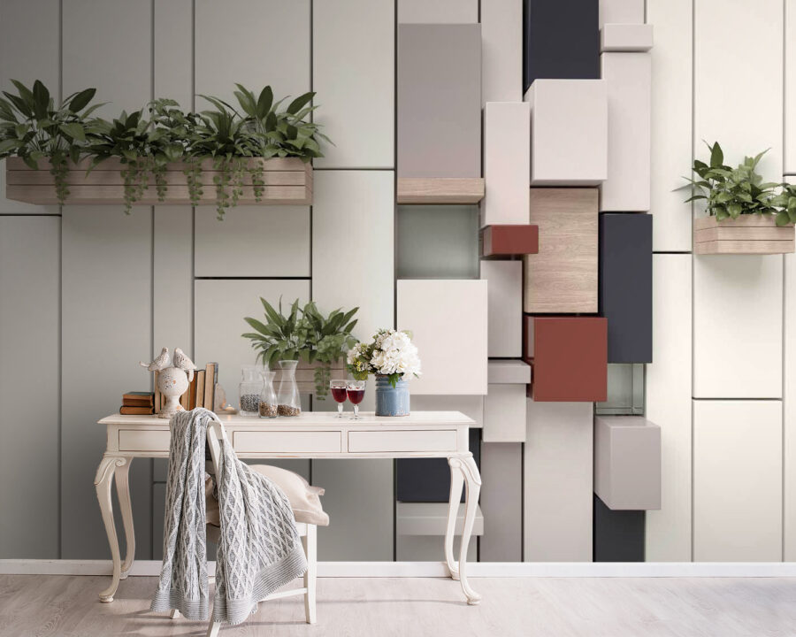 Transforma tu espacio con este vibrante mural «Wall with Plants and Boxes» (Pared con plantas y cajas). Combina a la perfección formas geométricas modernas con exuberante vegetación, creando un ambiente divertido y sofisticado. Imagina este mural en tu salón: cada mirada te proporcionará una refrescante bocanada de aire fresco. Es como tener un pequeño jardín que nunca necesita riego. Además, los tonos suaves añaden una sensación de amplitud, iluminando cualquier pared apagada. Ya sea para despertar la creatividad los lunes o simplemente para hacer que las pausas para el café sean un poco más serenas, este mural tiene el encanto necesario para mejorar tu decoración. ¿Quién diría que un mural podría ser tan acogedor?