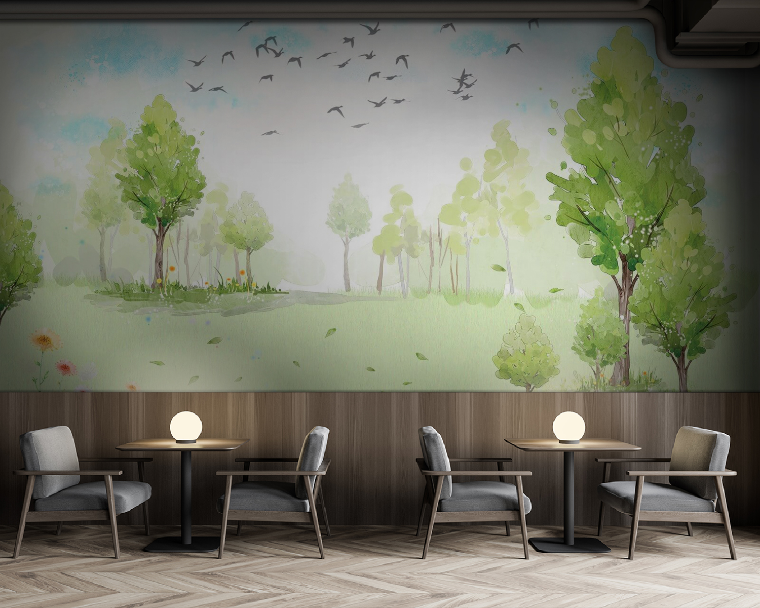 Transforma cualquier espacio en un refugio sereno con este encantador mural de pared que representa un exuberante campo verde lleno de árboles y pájaros volando por el cielo. Es como llevar un toque de naturaleza al interior sin el barro y los insectos. Imagina tomarte un café mientras contemplas los suaves tonos acuarelados: es relajante, refrescante y quizás incluso un poco caprichoso. Perfecto para una acogedora sala de estar o para esa oficina en casa que necesita un toque de alegría, este mural invita a un ambiente fresco, haciéndote sentir como si estuvieras descansando en un claro iluminado por el sol. Además, ¿quién no quiere sentirse como si estuviera en un picnic permanente?