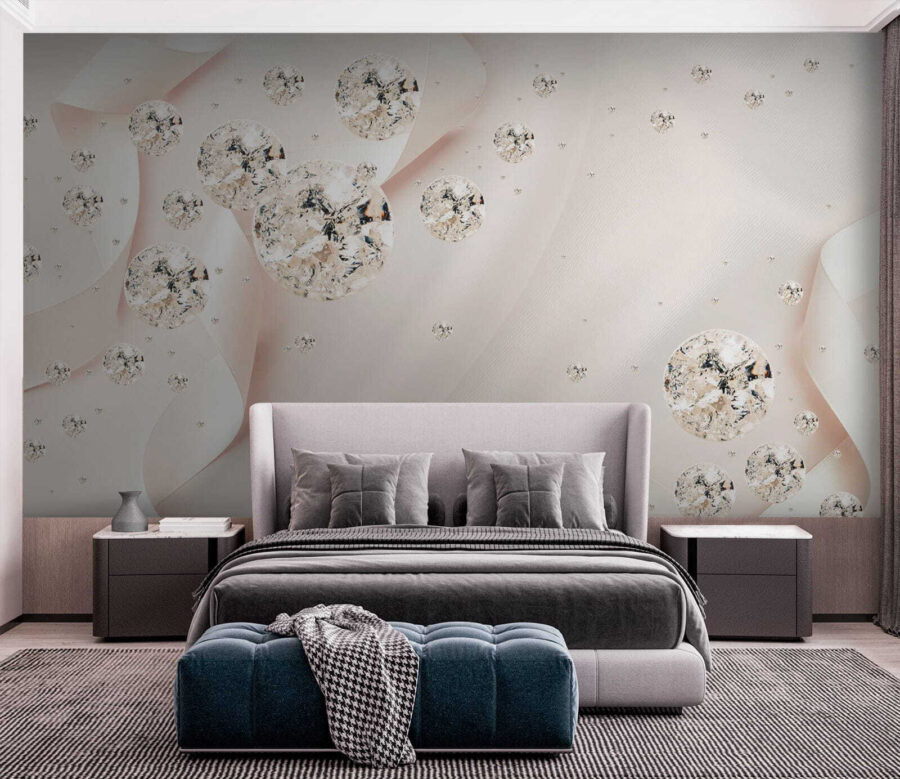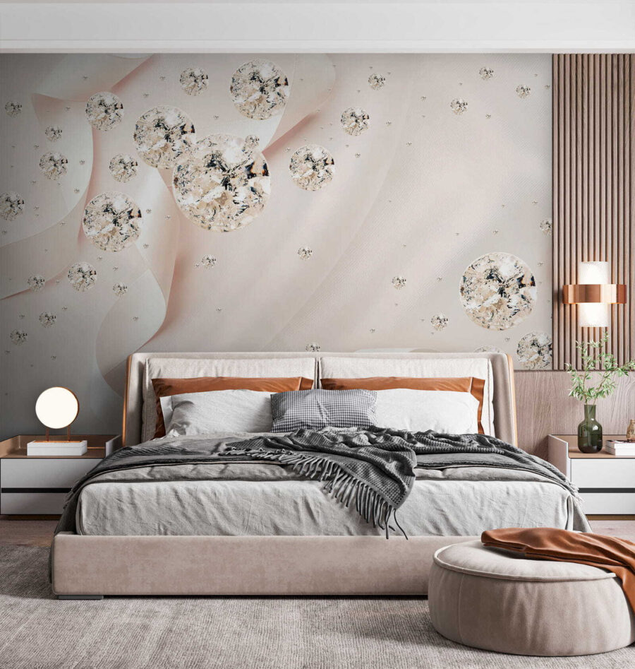 Transforma una pared aburrida en un lienzo vibrante para contar historias con este precioso mural. Imagínatelo: delicadas cintas que se arremolinan alrededor de fascinantes orbes, haciendo que cualquier habitación resulte acogedora y elegante. Es como un baile de ensueño de colores suaves y formas delicadas, perfecto para cuando esa pared lisa ya no es suficiente. Tanto si se trata de un dormitorio sereno como de un salón animado, este mural susurra encanto y gracia, como un cálido abrazo para sus paredes. Invite a su hogar a un toque de encanto que deje a sus invitados preguntándose cómo ha conseguido tanta magia. Es decoración con un toque artístico.