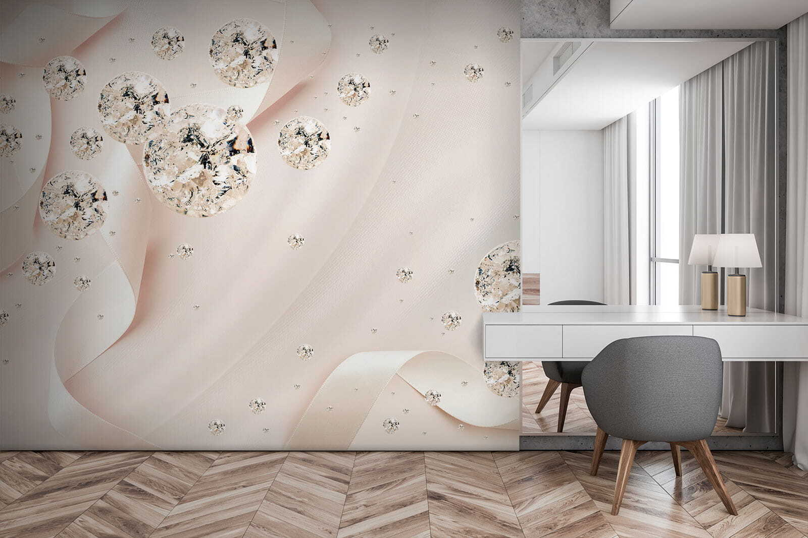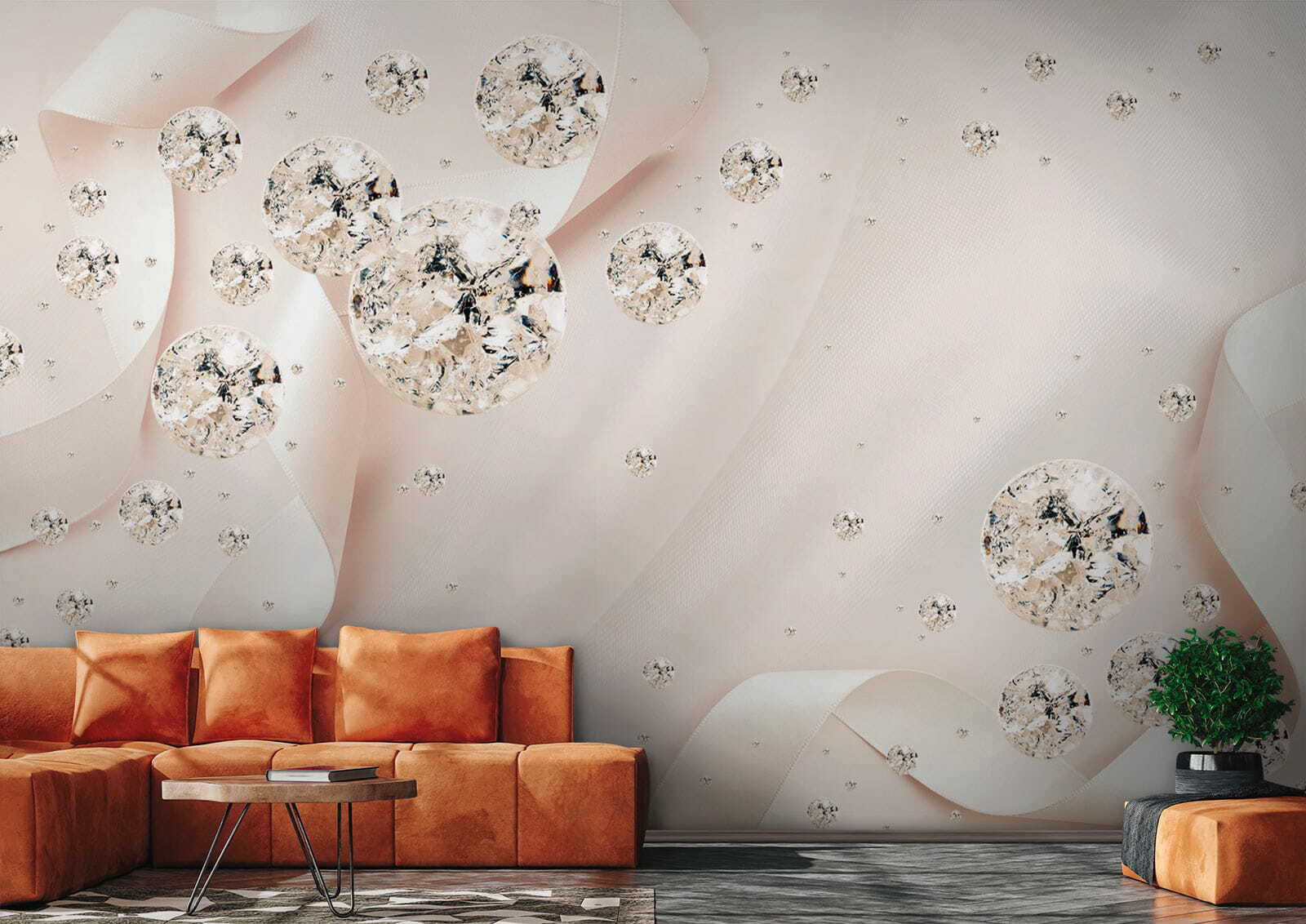 Transforma una pared aburrida en un lienzo vibrante para contar historias con este precioso mural. Imagínatelo: delicadas cintas que se arremolinan alrededor de fascinantes orbes, haciendo que cualquier habitación resulte acogedora y elegante. Es como un baile de ensueño de colores suaves y formas delicadas, perfecto para cuando esa pared lisa ya no es suficiente. Tanto si se trata de un dormitorio sereno como de un salón animado, este mural susurra encanto y gracia, como un cálido abrazo para sus paredes. Invite a su hogar a un toque de encanto que deje a sus invitados preguntándose cómo ha conseguido tanta magia. Es decoración con un toque artístico.