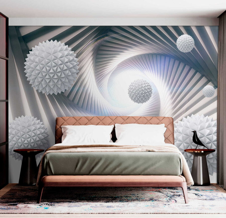 Imagínate tumbado, tomando un café y perdiéndote en las espirales mientras tus pensamientos entran y salen. Este mural no es sólo un telón de fondo, sino que suscita conversaciones y hace que cada mirada parezca una miniaventura. Perfecto para quienes desean añadir una pizca de creatividad sin abrumar los sentidos. Además, podría inspirar algún que otro proyecto de diseño. ¿Quién no quiere eso? ¿El único reto? Decidir qué habitación merece una declaración tan audaz.