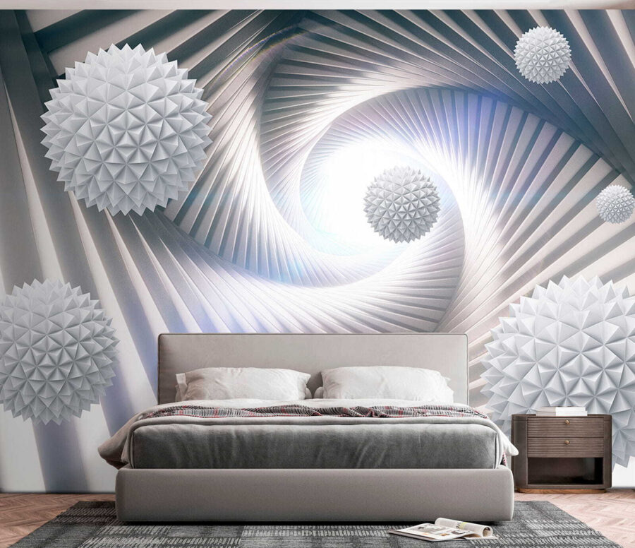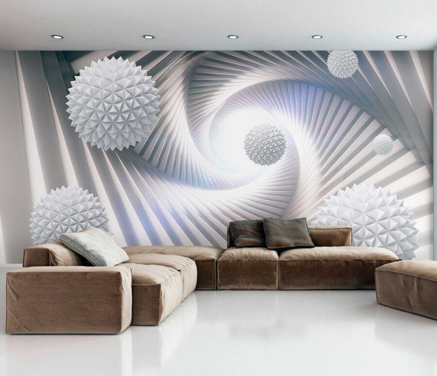 Transforme su espacio con este llamativo mural, “Murales de pared Esfera blanca con triángulos”. Es como entrar en un país de las maravillas geométricas de ensueño. Imagínese esto: entra en una habitación y, de repente, estas formas juguetonas e intrincadas saltan de la pared. No es sólo decoración; crea un ambiente de calma y curiosa calidez.