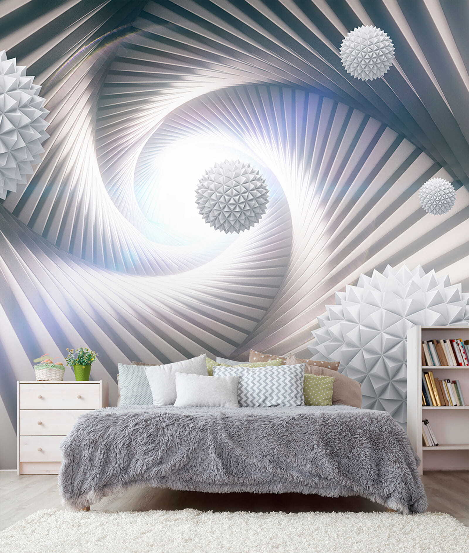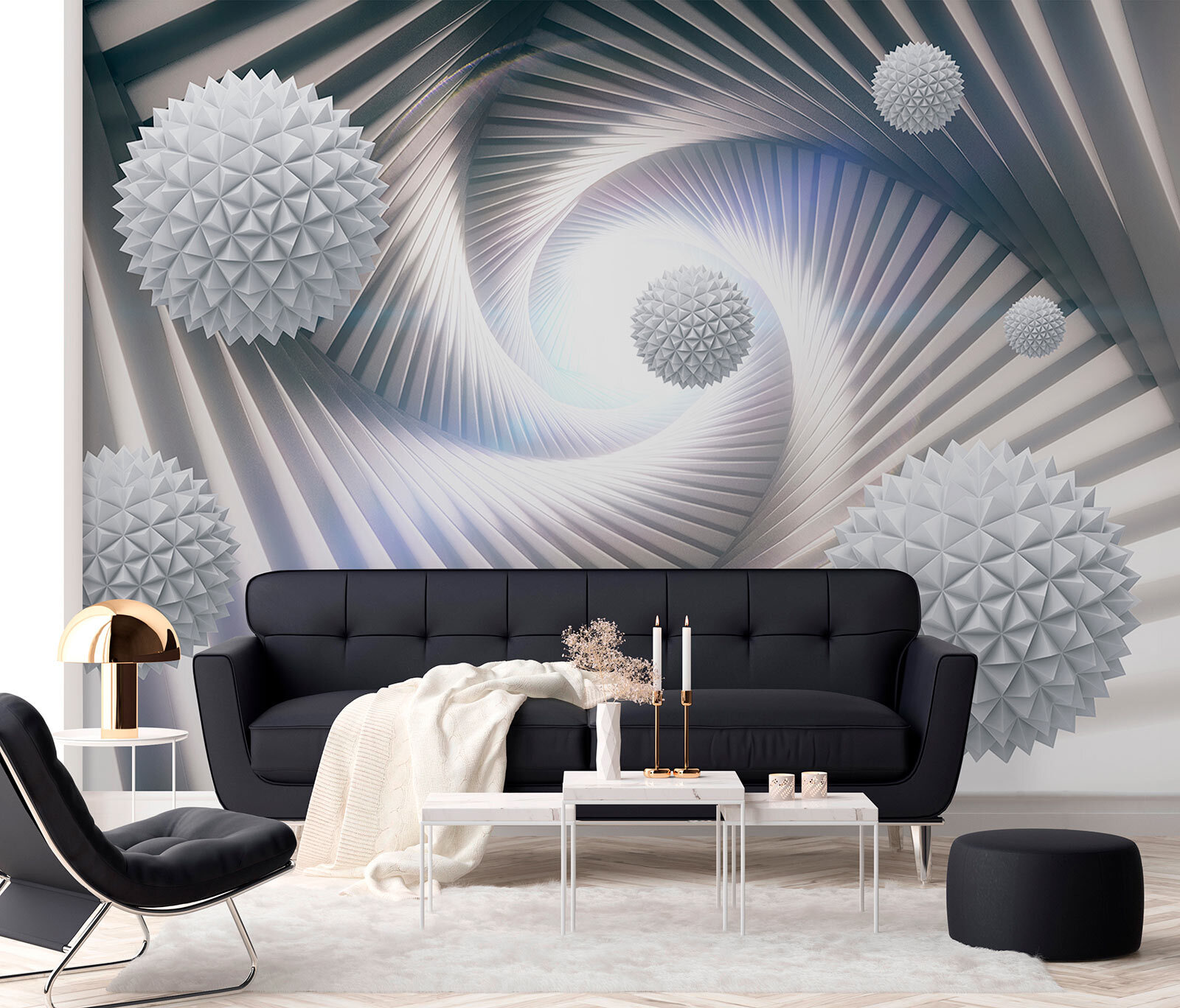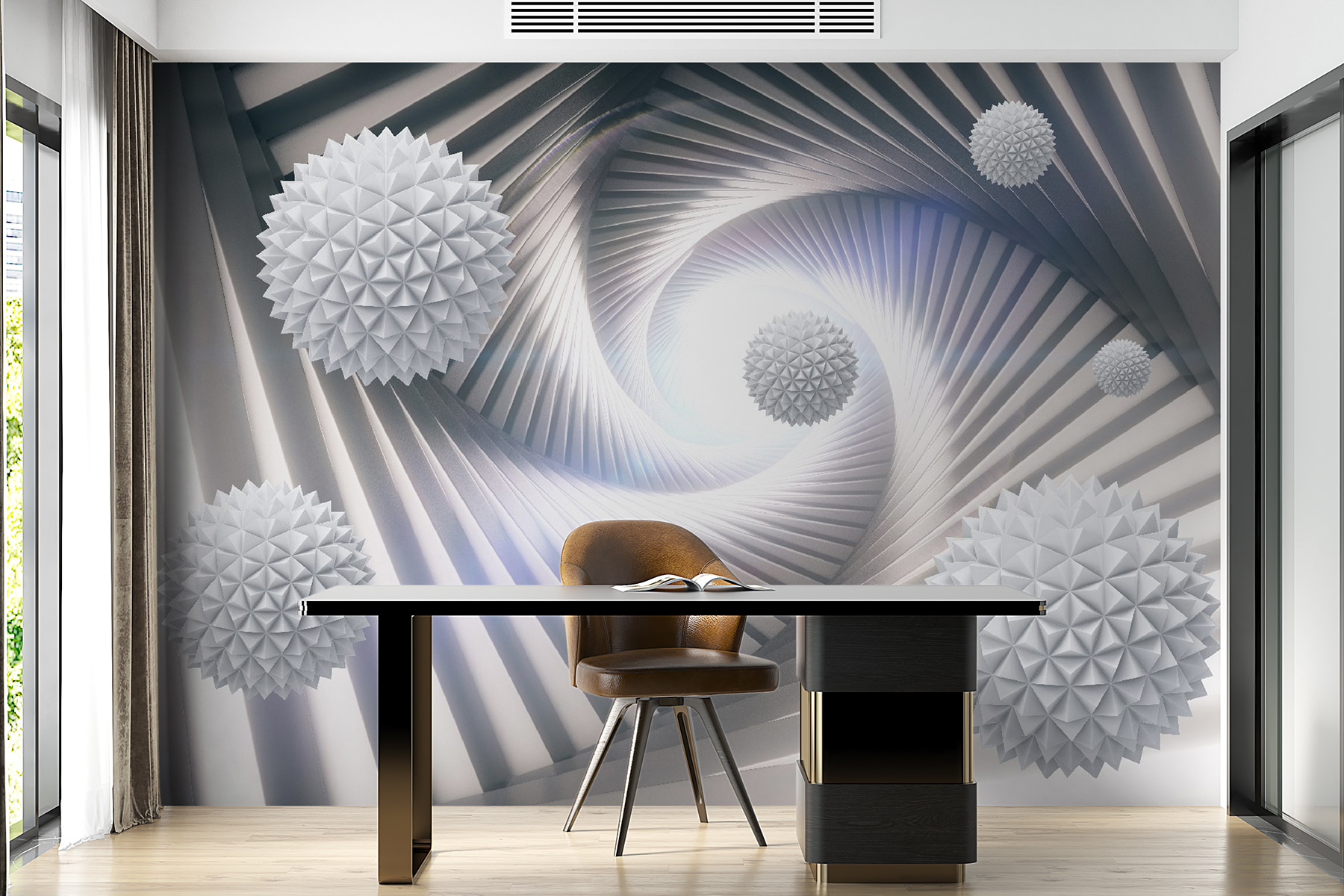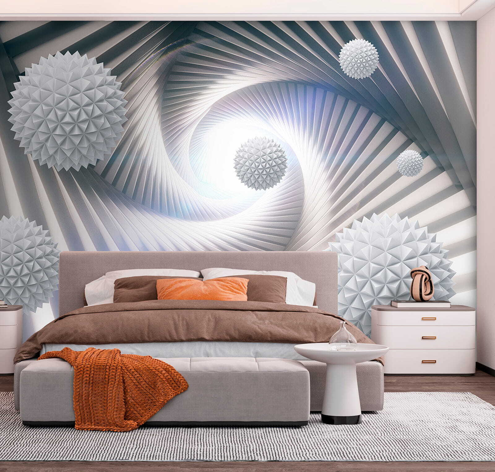 Imagínate tumbado, tomando un café y perdiéndote en las espirales mientras tus pensamientos entran y salen. Este mural no es sólo un telón de fondo, sino que suscita conversaciones y hace que cada mirada parezca una miniaventura. Perfecto para quienes desean añadir una pizca de creatividad sin abrumar los sentidos. Además, podría inspirar algún que otro proyecto de diseño. ¿Quién no quiere eso? ¿El único reto? Decidir qué habitación merece una declaración tan audaz.