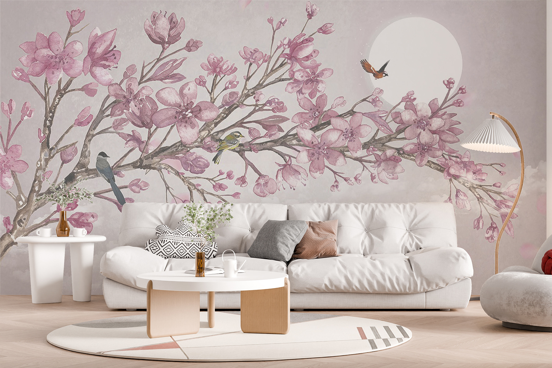 Transforme su espacio con este encantador mural de pared con un encantador pájaro acurrucado en una rama en flor. Las delicadas flores rosas y los colores suaves aportan una sensación de frescura primaveral al interior, como un cálido abrazo tras un largo invierno. Imagínese tomando su café matutino o acurrucándose con un libro mientras esta encantadora escena ilumina la habitación. No es sólo un mural; es un trocito de naturaleza que envuelve tus paredes, invitando a sonreír y a soñar despierto. Perfecto para aquellos a los que les gusta encontrar la belleza en lo cotidiano, añade un suave capricho al que es difícil resistirse.