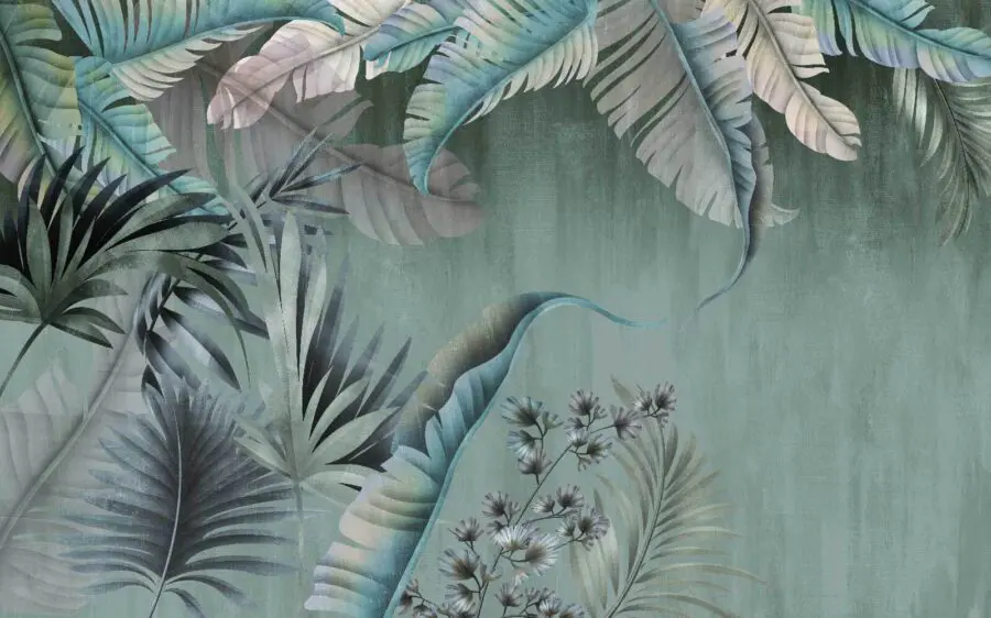 Fotomurales Hojas exuberantes en tonos calmantes (SKU: u05112)