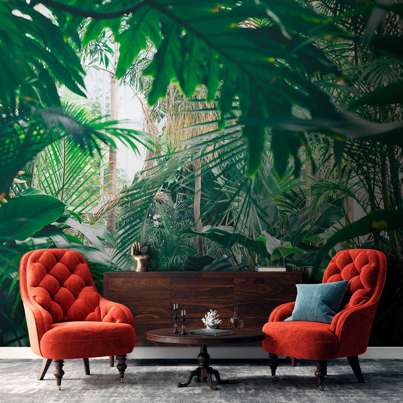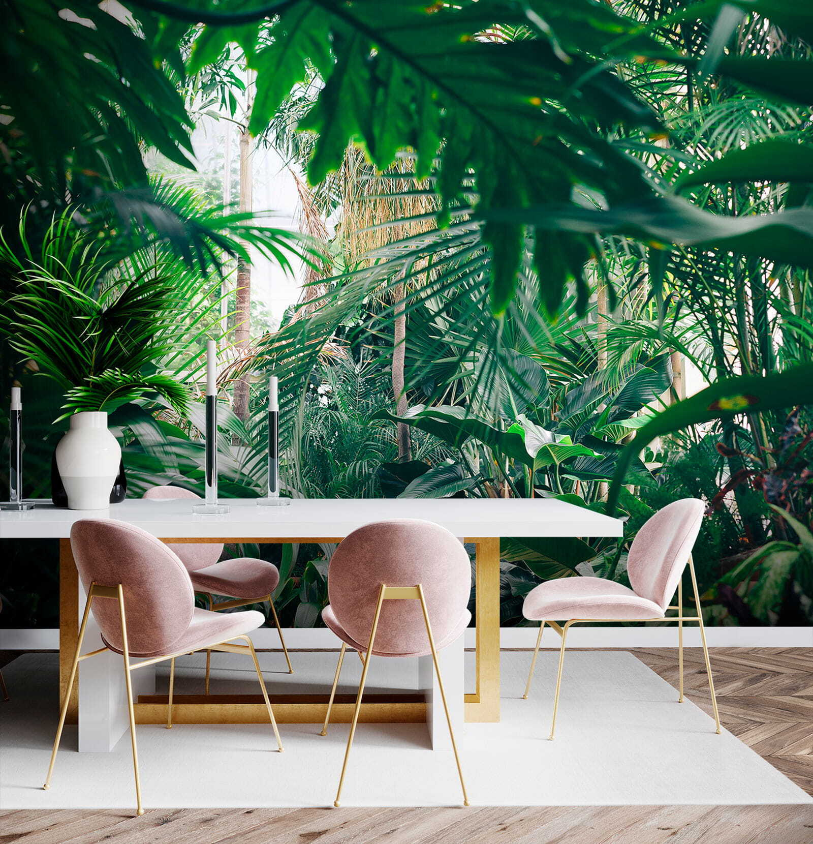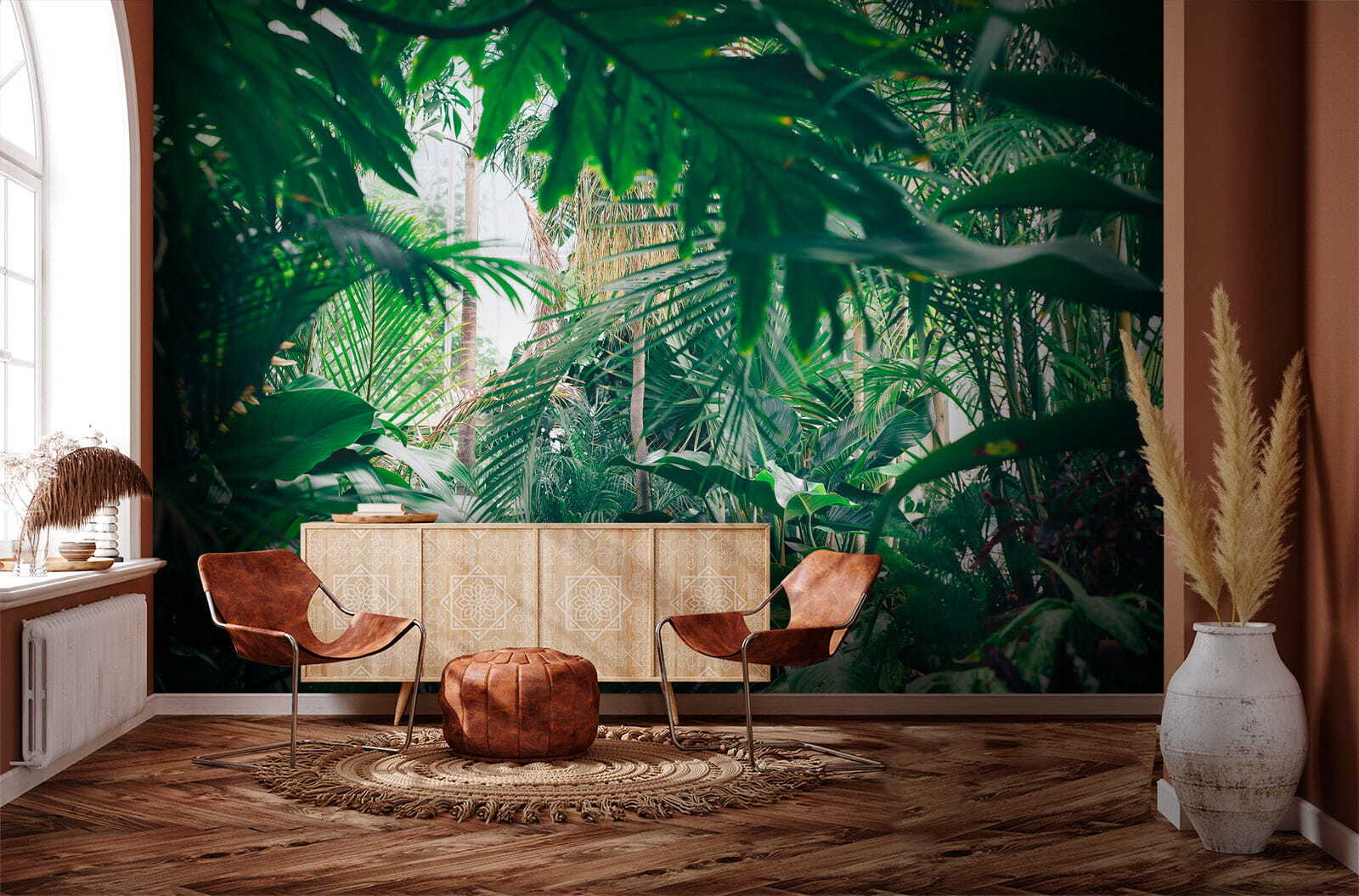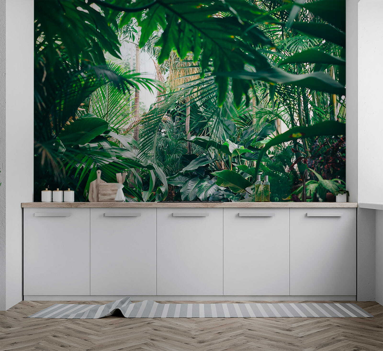 Transforme cualquier habitación en un paraíso tropical con este impresionante mural de exuberante follaje selvático bañado por la luz del sol. Imagínese entrar en su espacio y sentir que ha entrado directamente en una selva serena, donde el aire es fresco y la luz del sol se filtra a través de las hojas. Es como llevar un trozo de naturaleza al interior sin el insecticida. Perfecto para los que anhelan un poco de verdor pero no tienen mano para las plantas. Sus amigos pensarán que ha encontrado el lugar de vacaciones definitivo en su propia casa. Imagínate acurrucado con un buen libro o disfrutando de una taza de café, rodeado de esta vibrante escapada. No es sólo un mural; ¡es un soplo de aire fresco para tus paredes!