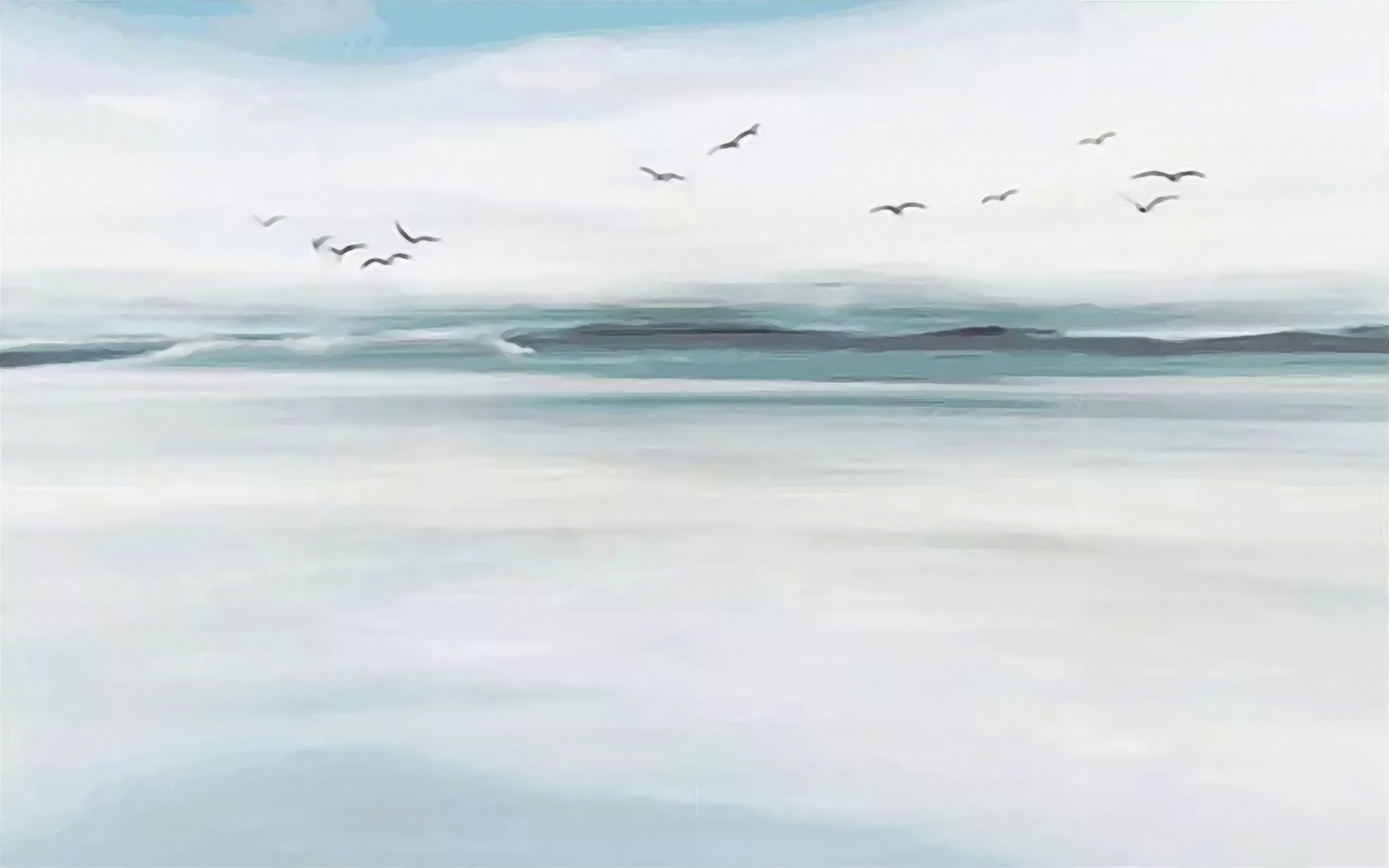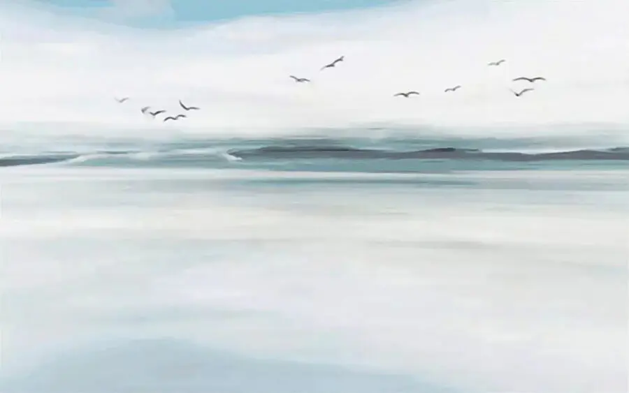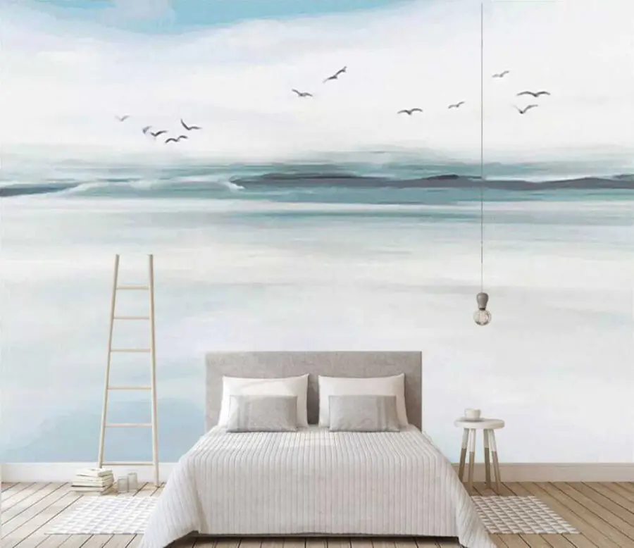 Imagine su espacio transformado por este mural de ensueño, ¡como una suave acuarela que cobra vida! Imagínese “Pájaros volando sobre una masa de agua”, llenando su habitación de serenidad. Es como tener un retiro junto al mar en casa, sin la arena en los zapatos… ¡ni las gaviotas robándote los aperitivos!