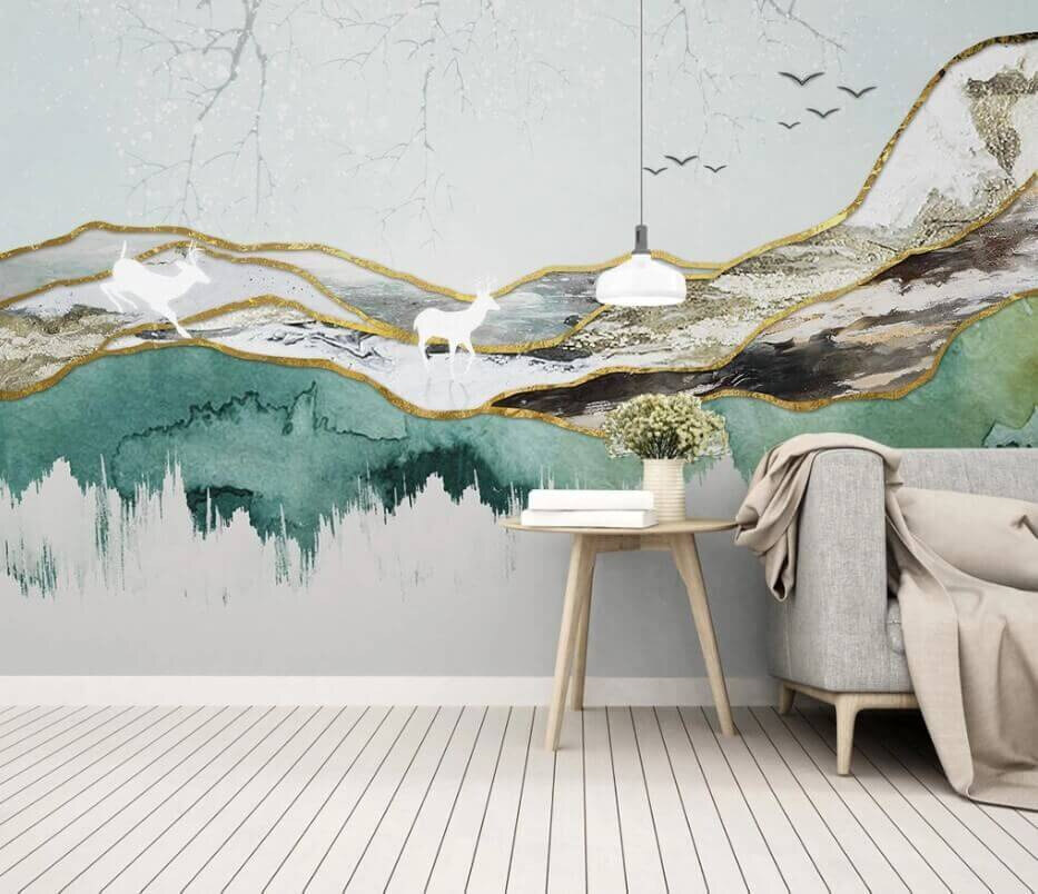 Imagina entrar en una acogedora habitación decorada con este impresionante mural de un ciervo y majestuosas montañas. Es como llevar un pedazo de naturaleza al interior. Los colores serenos y las suaves curvas del paisaje invitan naturalmente a la calma, lo que lo hace perfecto para un rincón de lectura o cualquier lugar donde se aprecie la paz. Imagina recibir a tus amigos y ver cómo se les iluminan los ojos al descubrir ese ciervo artístico, casi como si estuviera asomándose a la habitación. Este mural no es solo decoración, es una pequeña escapada al aire libre, sin insectos. Ya sea para dar un toque de naturaleza o un toque de fantasía, este mural lo tiene todo.