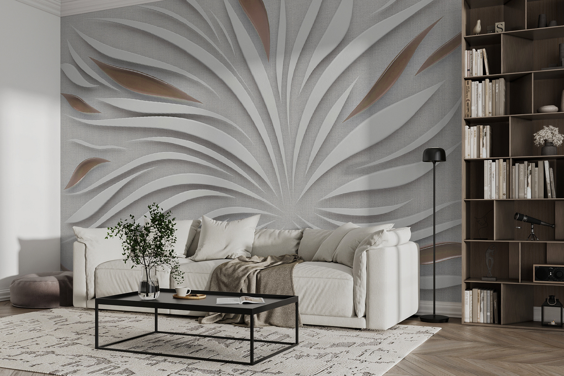 Transforme una pared lisa en un jardín de elegancia con este mural floral abstracto. Imagínese entrar en un espacio sereno donde las curvas suaves y los patrones fluidos bailan juntos en armonía. Es como un hermoso secreto que espera ser descubierto cada vez que alguien entra. Perfecto para una sala de estar, dormitorio o rincón acogedor, este mural añade un ambiente refrescante sin abrumar. Imagínese tomando un café y dejando que el relajante diseño le inspire ensoñaciones o pensamientos profundos. Es más que decoración; es una escapada diaria que combina el encanto de la naturaleza con un toque de estilo moderno. ¿Quién no querría eso?