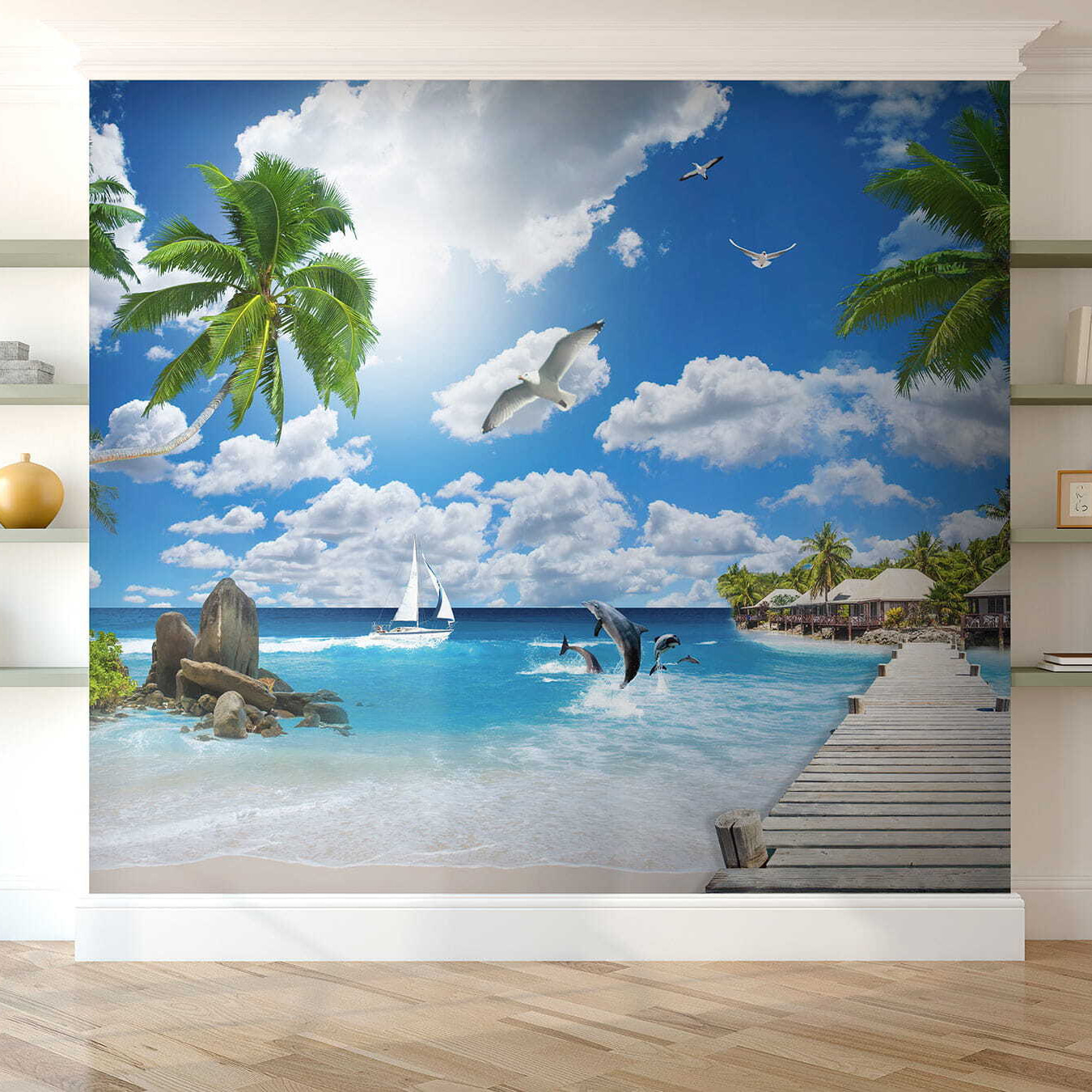 Imagínese entrar en un paraíso tropical cada vez que entre en una habitación. Este impresionante mural, “Pájaro volando en el cielo”, te transporta a días soleados y suaves brisas marinas. Los azules vibrantes y los verdes exuberantes te atraen, como una bebida fresca en un día caluroso. Es perfecto para esa pared que necesita un poco de amor, creando una sensación de verano sin fin. Imagínate recibiendo a tus amigos o simplemente disfrutando de un momento de tranquilidad: respira ese ambiente sereno. No es sólo decoración; es una invitación a escapar de lo ordinario y sumergirse en su propia porción de la maravilla de la naturaleza.