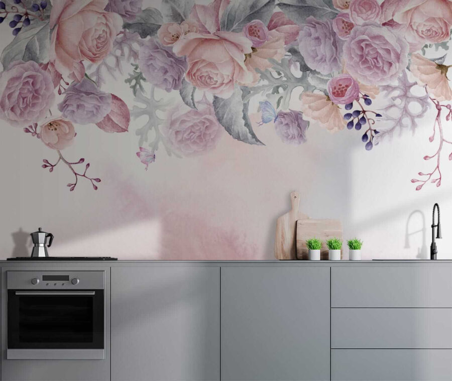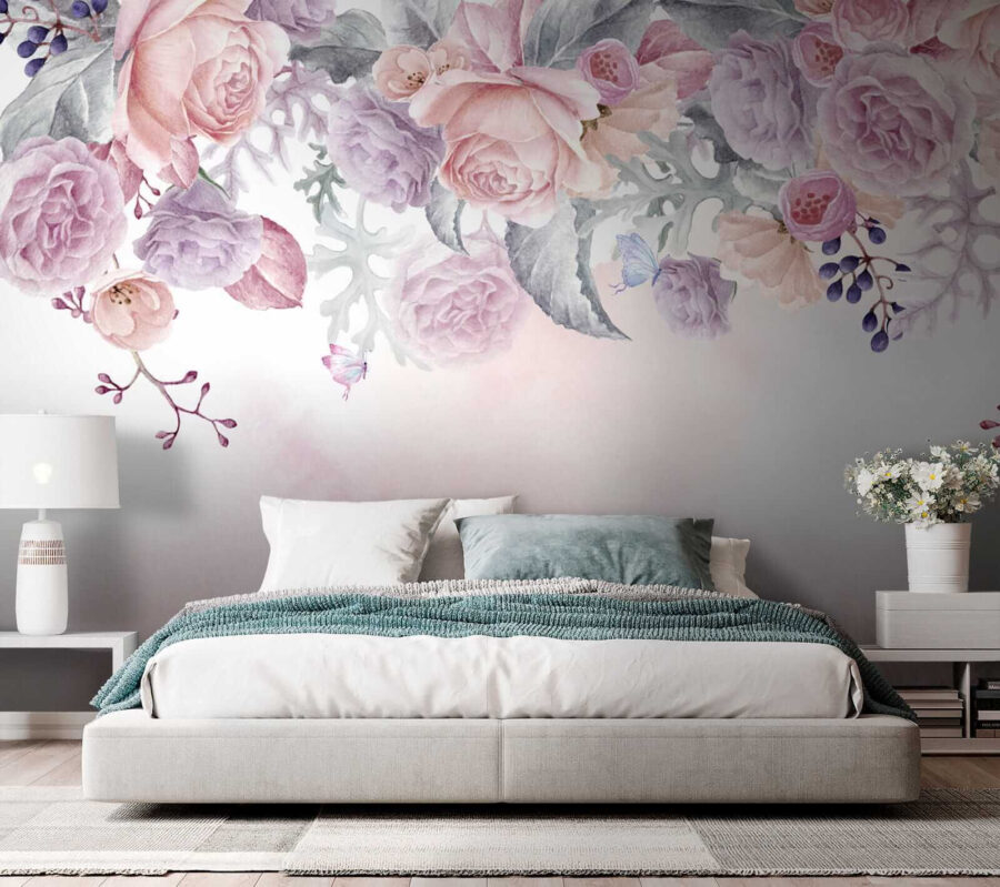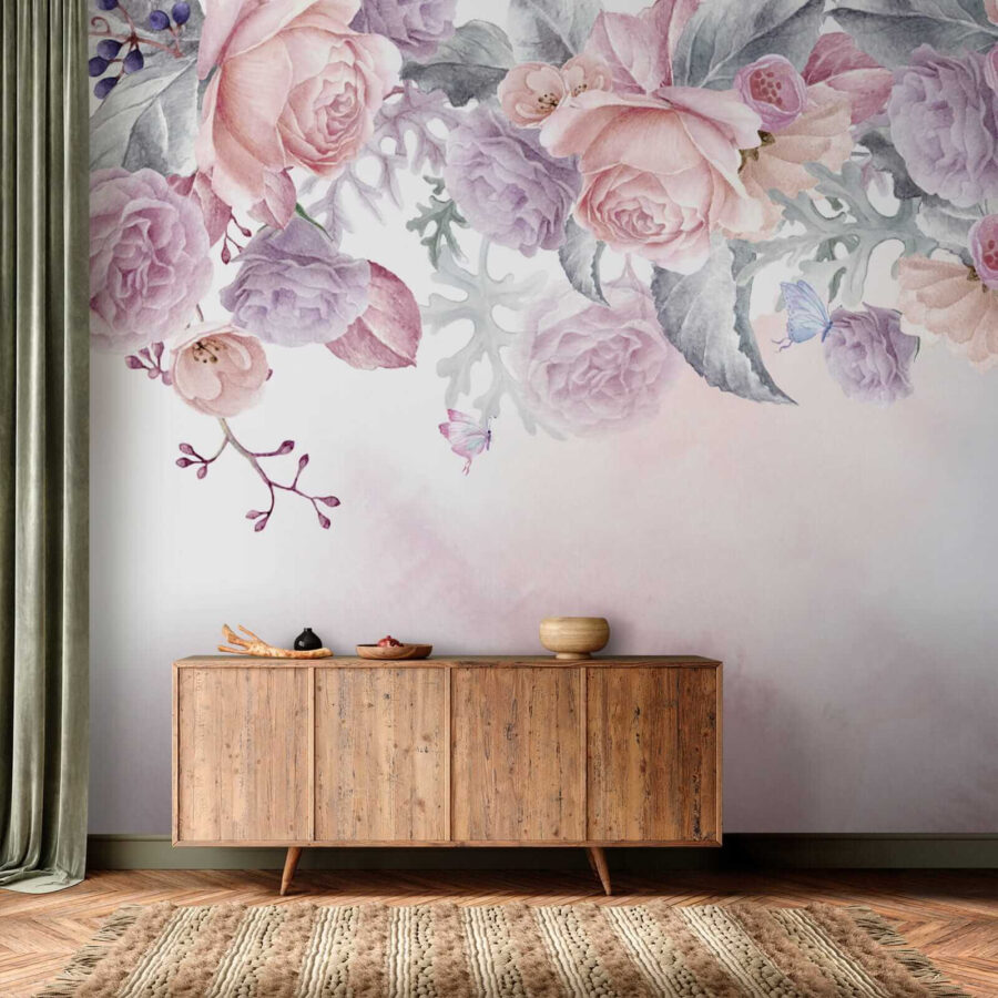 1 valoración en Fotomurales Rosas florales con delicadas mariposas