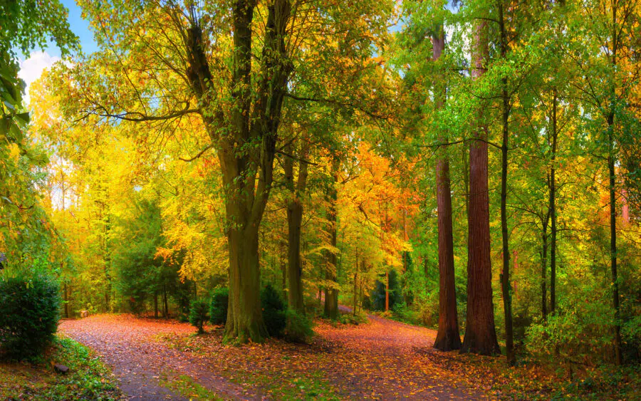 1 valoración en Fotomurales Colorido bosque otoñal con camino serpenteante