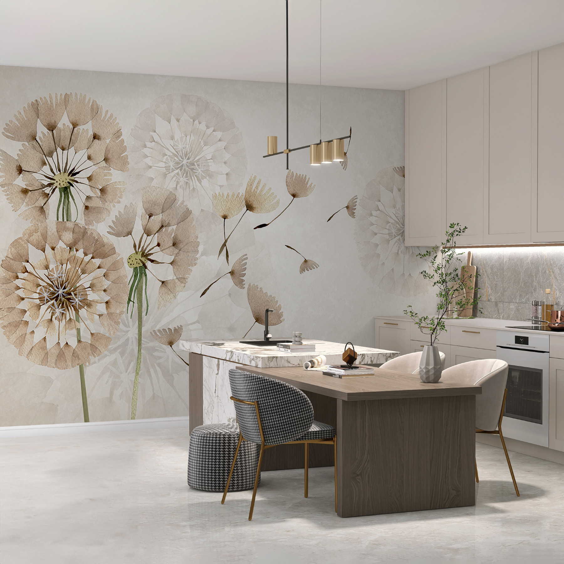 Imagine entrar en una habitación y sentir al instante una brisa de calma… Eso es lo que consigue este mural. “Delicados dientes de león a la deriva con la brisa” captura esos momentos en los que el tiempo parece flotar. Perfecto para la habitación de un niño o el refugio de un adolescente, este mural añade un toque de fantasía y asombro a cualquier espacio. ¿Y esos tonos tierra? Son como un abrazo visual, cálido y acogedor. Encaja a la perfección tanto en un rincón de la guardería como en la zona de descanso de un joven. Casi puedes sentir los suaves susurros de la naturaleza con cada mirada… ¡como un sueño despierto pintado en tu pared!