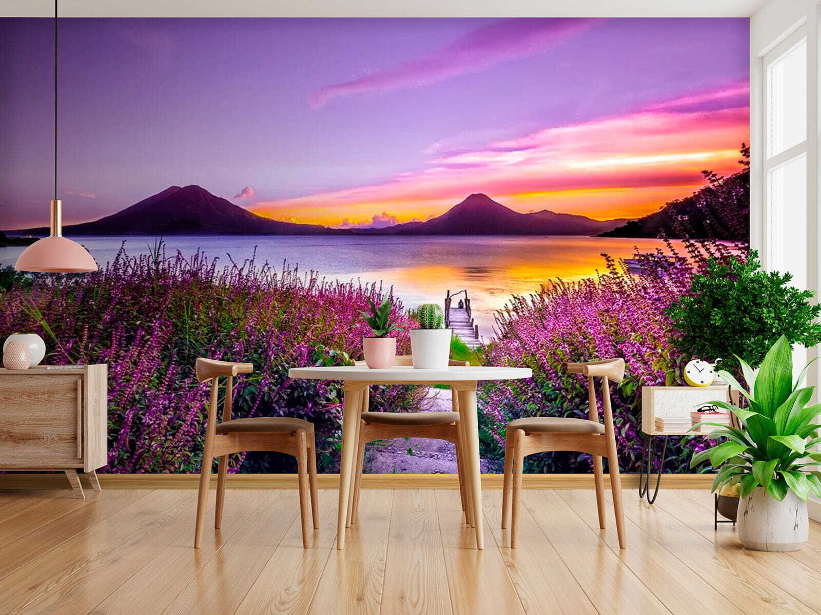 Imagine adentrarse en una escapada serena cada vez que mire a su pared. Este mural, con un camino tranquilo que conduce a un lago brillante enmarcado por flores de color púrpura vibrante, te lleva directamente al abrazo de la naturaleza. Los relajantes púrpuras y azules crean un ambiente tranquilo, perfecto para un rincón de lectura acogedor o una entrada acogedora. Cuando el sol se oculta en el horizonte, esos tonos suaves invitan a la paz. Es como tener unas minivacaciones en casa, donde cada mirada puede hacer que el mundo exterior parezca un poco más tranquilo y luminoso. Perfecta para soñar despierto o simplemente relajarse.