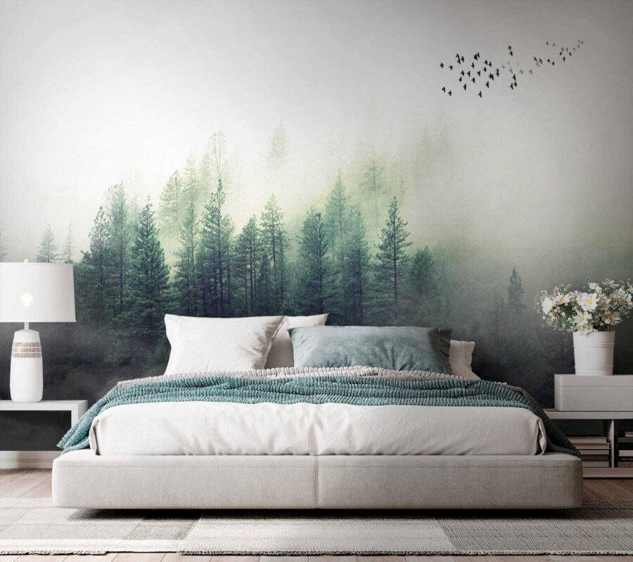 Imagine contemplar un bosque brumoso cada mañana… ¡oh, qué tranquilidad! Este mural de pared, “Imagen borrosa del rostro de una persona”, es como llevar el acogedor ambiente de una cabaña al salón de tu casa. El bosque es mágico, casi como si pudieras adentrarte en el verde sereno y perderte en la naturaleza. Además, los pájaros que vuelan a lo lejos añaden un toque de fantasía.