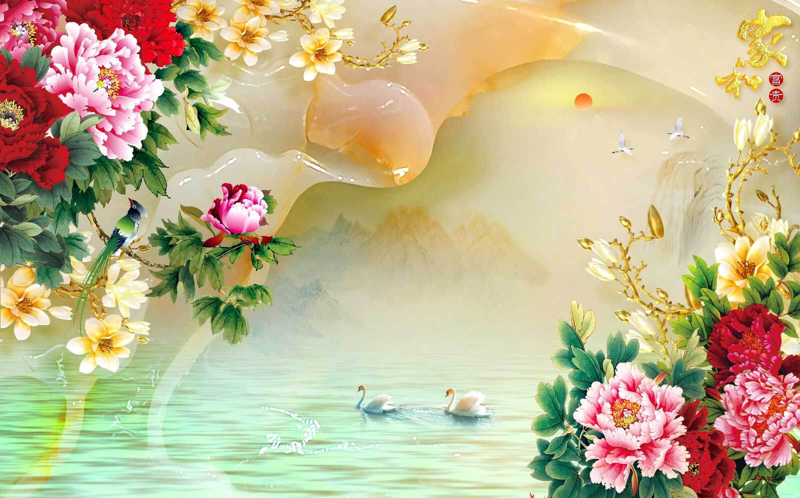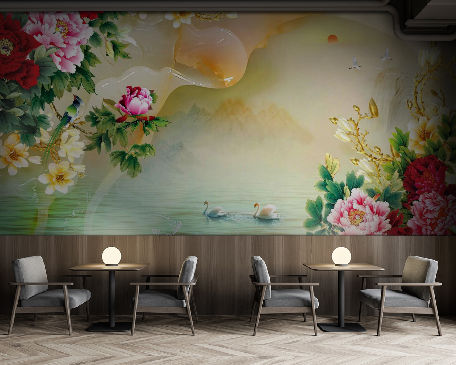 Transforma cualquier espacio en un oasis de tranquilidad con este encantador mural decorativo con flores vibrantes y elegantes cisnes. Las flores de peonía resaltan con su colorido, creando un ambiente alegre, mientras que los serenos cisnes se deslizan sobre una superficie de agua de ensueño, invitando a una relajante tarde de contemplación. Imagina tomarte un té aquí, sintiéndote como si hubieras entrado en una acuarela. Esta pieza es perfecta para paredes decorativas o rincones acogedores, ya que combina sin esfuerzo la belleza de la naturaleza con tu decoración. No es solo arte, es una invitación a hacer una pausa, respirar y disfrutar un poco más de la vida.
