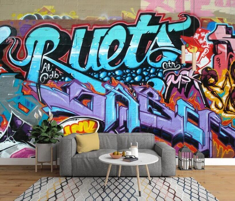 Perfecto para adolescentes o adultos jóvenes que quieren un poco de ambiente urbano en su espacio, este mural grita personalidad sin decir una palabra. Tiene todos esos colores vibrantes y diseños intrincados que te hacen sentir como si estuvieras paseando por un callejón artístico en una ciudad bulliciosa.
