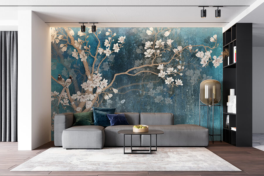 ¿Alguna vez ha soñado con dar un toque de belleza natural a su interior? Este mural de pared “Flor blanca sobre fondo azul” es como un soplo de aire fresco para su espacio. Imagine delicadas flores blancas cayendo en cascada sobre un fondo azul de ensueño, con encantadores pájaros posados con tanta gracia. Es como tener su propio jardín secreto, ¡sin tener que regarlo!