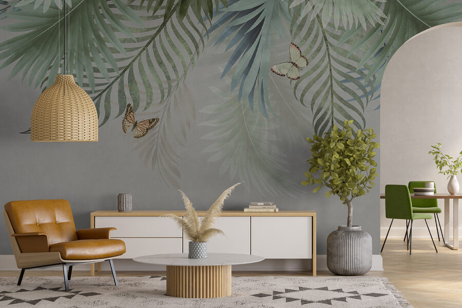 2 valoraciones en Fotomurales Las mariposas revolotean entre las ramas frondosas
