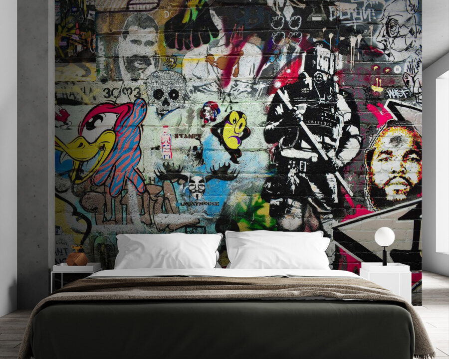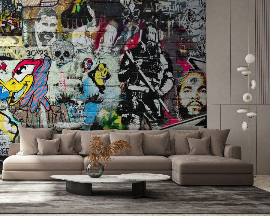¿Alguna vez has querido sentir que vives en un loft artístico de ciudad? Este mural “Hombre con barba y bigote pintado en una pared de ladrillo” lleva ese ambiente directamente a tu espacio. No es sólo una pared, es un estallido de personalidad, una declaración audaz, un tema de conversación. Imagínese tomando su café matutino, dejando que sus ojos vaguen por los intrincados detalles y los extravagantes personajes. Es como tener una pequeña galería de arte en casa. Además, un mural en una pared de ladrillo tiene algo muy chulo: añade ese toque de historia y suciedad. Es perfecto para los amantes de la creatividad y la vanguardia en la decoración. Así que adelante, ¡deja que tus paredes hablen en clave urban chic!
