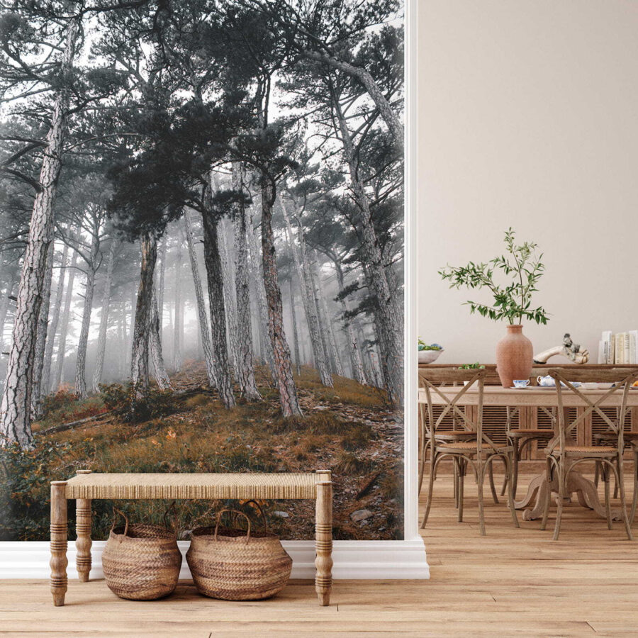 Imagina entrar en un bosque tranquilo, donde los árboles se elevan y la niebla susurra los secretos de la naturaleza. Este mural «Bosque con árboles en la niebla» transforma tu espacio en un refugio sereno. Captura ese momento de ensueño en el que la luz del sol baila a través de la niebla, creando sombras suaves y una sensación de asombro. Imagina acurrucarte con un libro o tomar un café mientras esta tranquila escena te envuelve: ¡es como llevar el aire libre al interior sin los insectos! Perfecto para cualquiera que quiera añadir un toque de calma y misterio a sus paredes. Entonces, ¿por qué no dejar que tu imaginación vuele entre estos árboles brumosos? Es un tema de conversación, un recordatorio para respirar y un pequeño pedazo de la magia del bosque, ¡todo en uno!