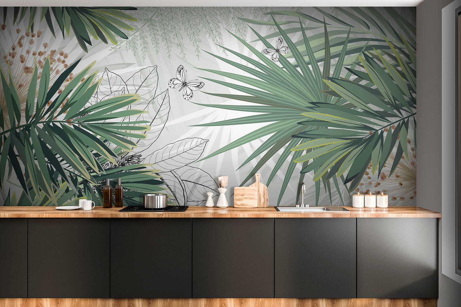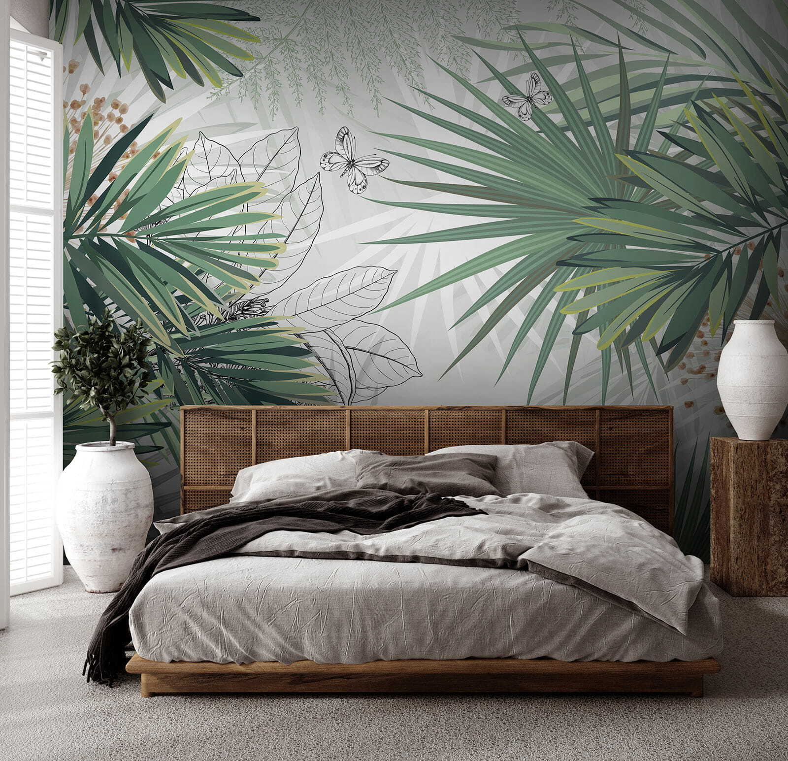 2 valoraciones en Fotomurales Ilustración de hojas tropicales y mariposas