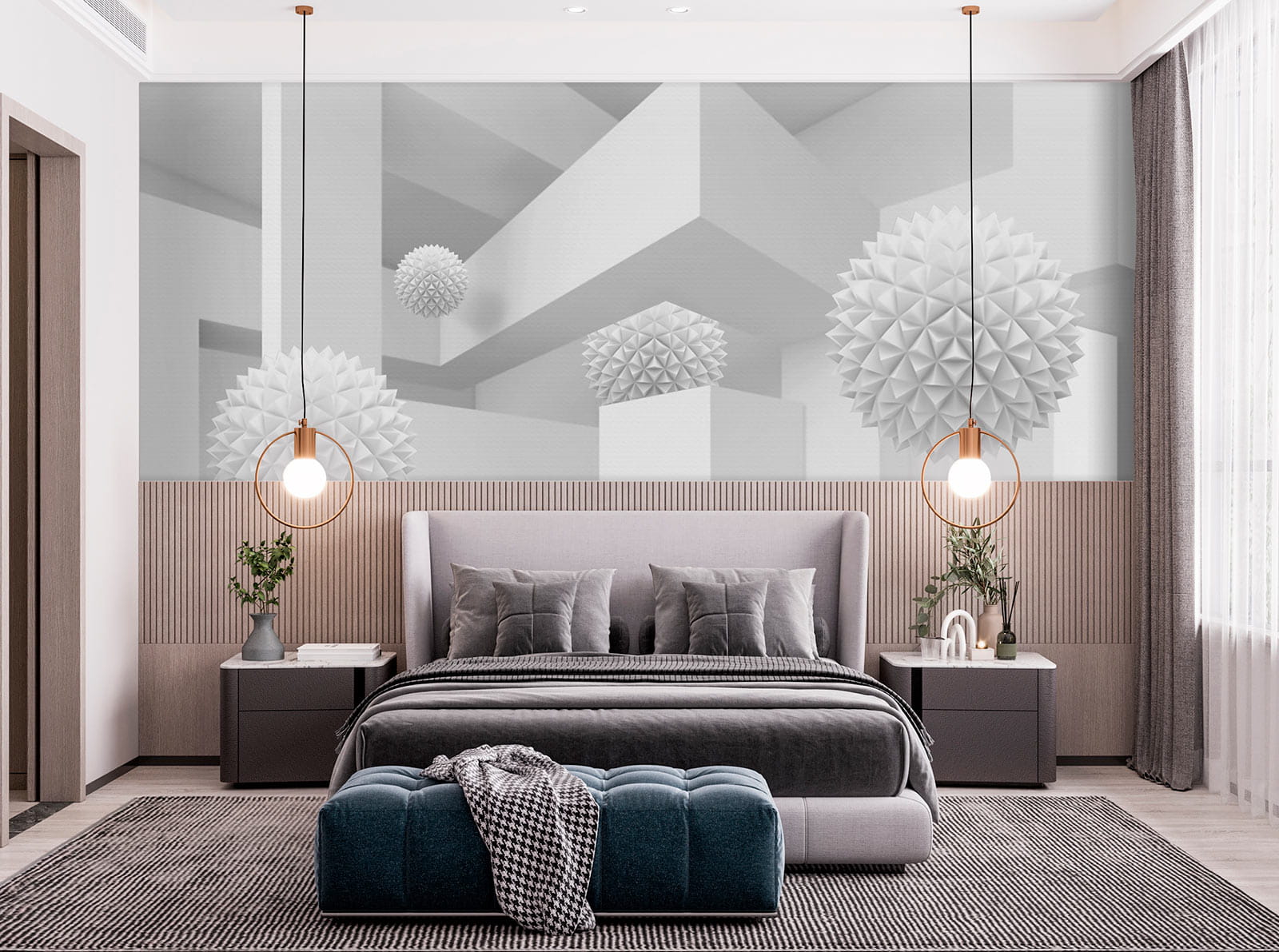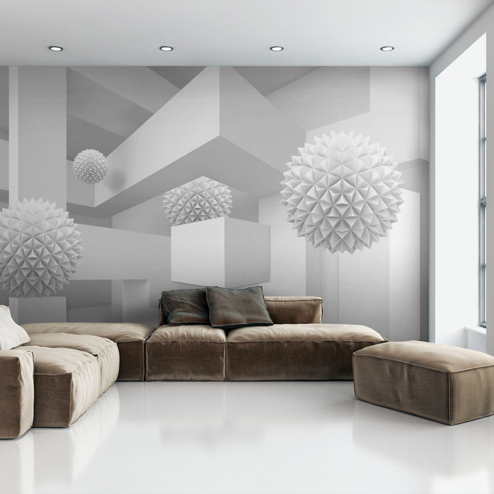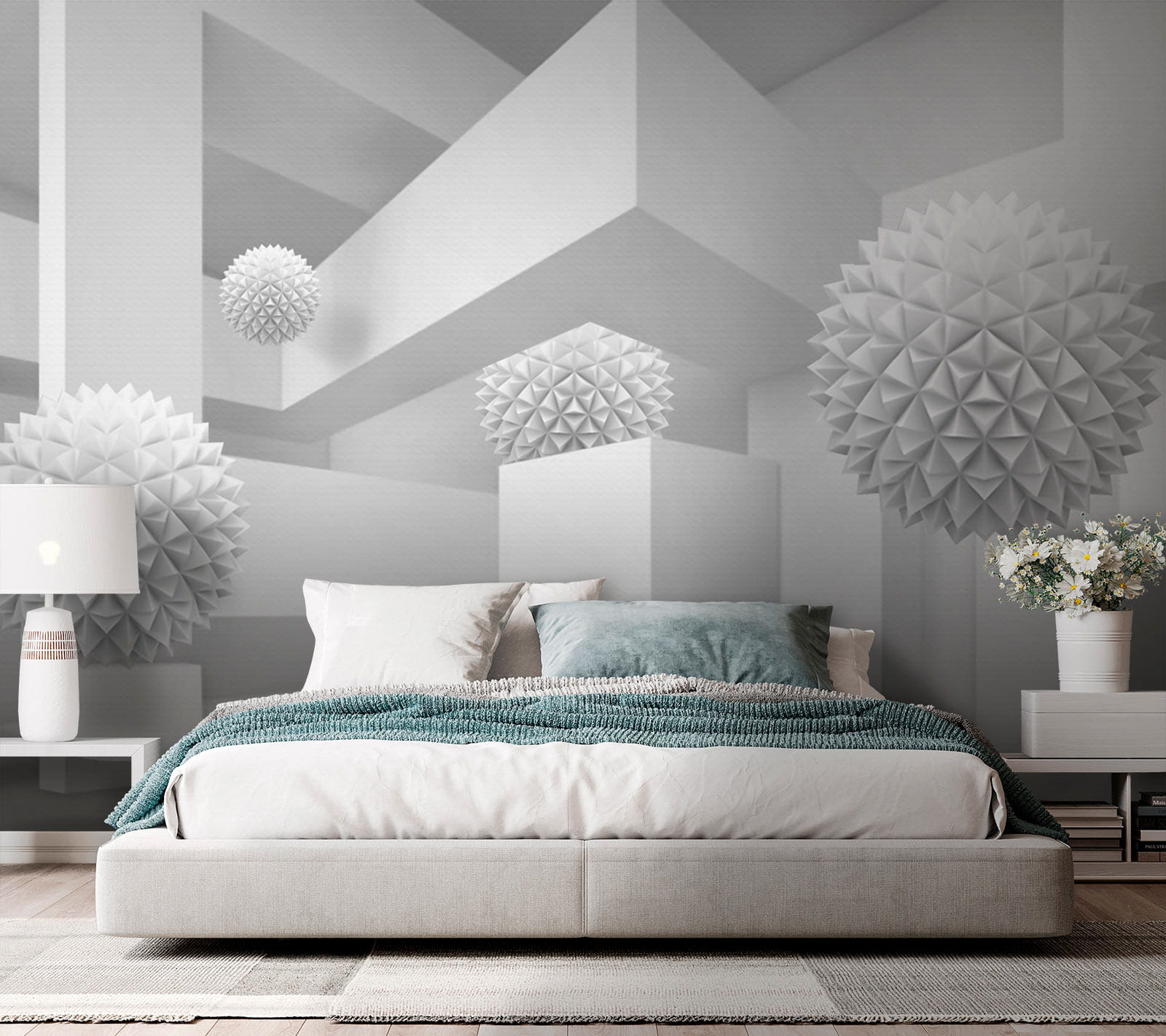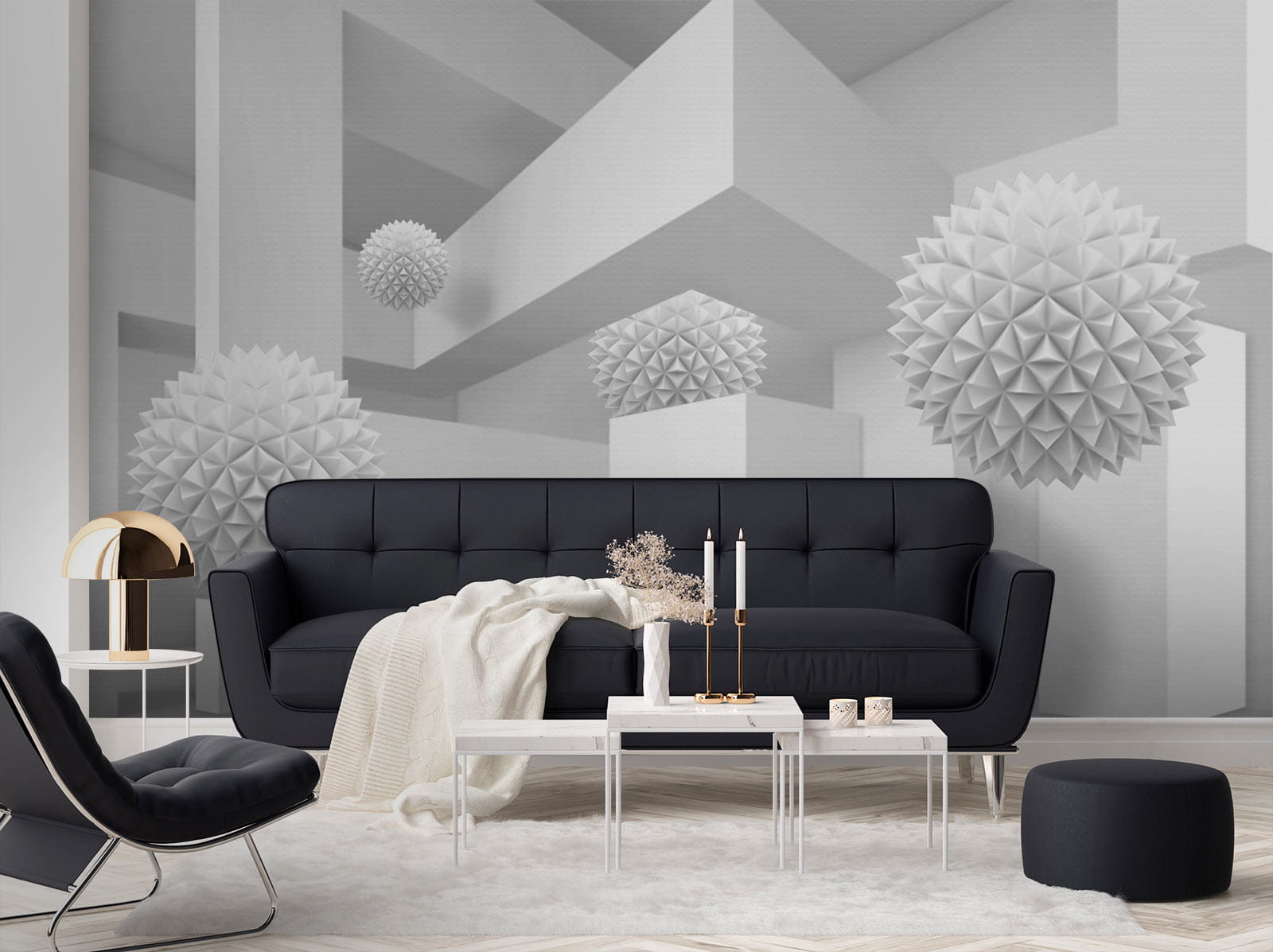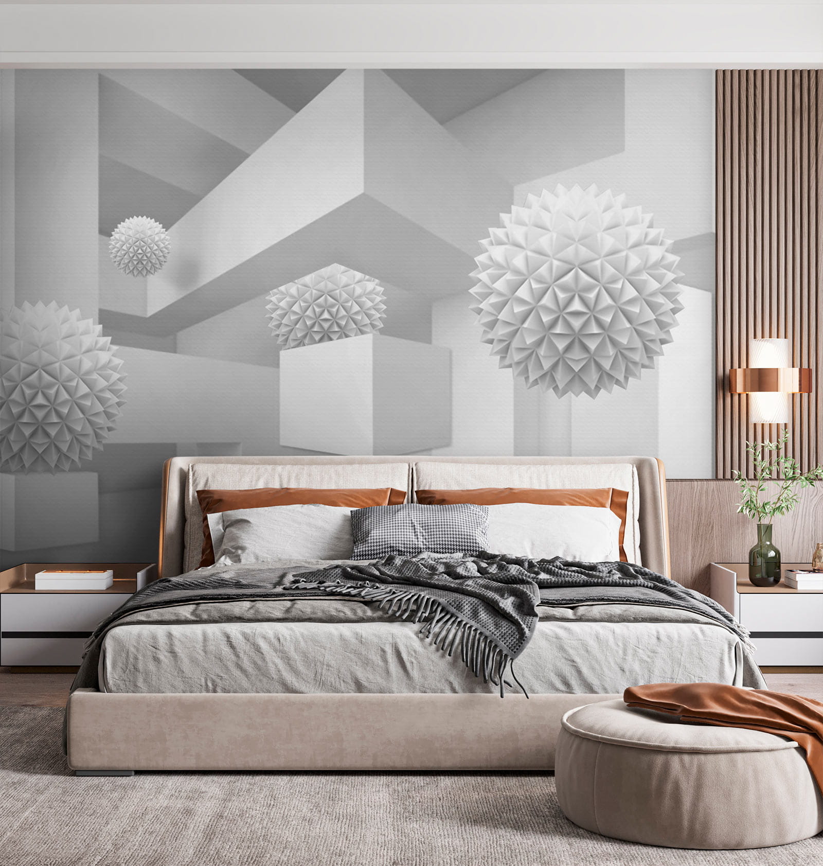 Imagine que entra en un espacio sereno y de ensueño donde el blanco es el protagonista. Este mural, que representa una habitación limpia y luminosa llena de extravagantes bolas tridimensionales, parece una caprichosa aventura de simplicidad. Las formas juguetonas resaltan sobre el fondo, invitando a miradas curiosas y sonrisas amables. Perfecto para un salón moderno o un rincón creativo, transforma cualquier pared en un tema de conversación. Imagínese recibiendo a amigos, con los ojos iluminados por el desconcierto y las risas desbordantes mientras intentan descifrar la historia que se esconde tras estas formas flotantes. No es sólo un mural, es toda una experiencia.