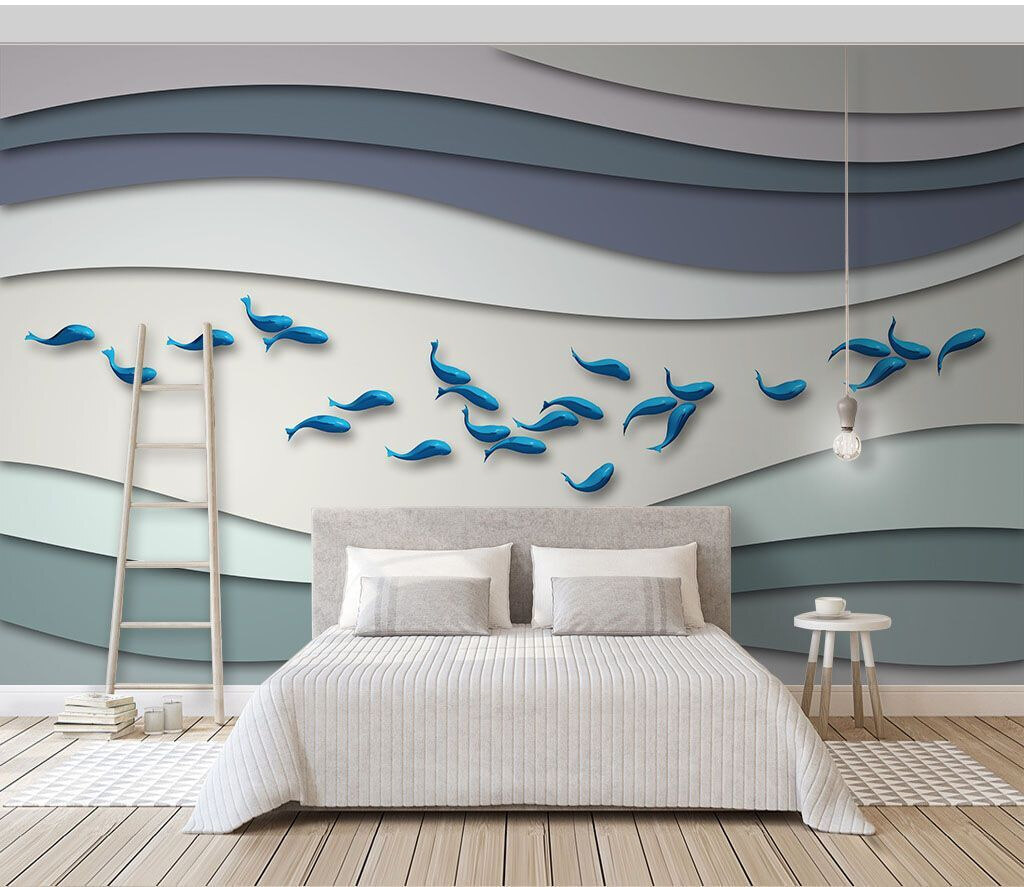 Sumérgete en un mar de estilo con este mural que muestra un alegre grupo de peces azules nadando entre suaves olas. ¡Es como si tu pared se hubiera ido de vacaciones a la playa! Los relajantes tonos azules y los suaves patrones ondulados alegran al instante cualquier espacio. Imagina la atmósfera relajante: un remanso de paz en tu salón o incluso en el cuarto de baño, porque, ¿por qué no? Cada mirada te transportará a un océano tranquilo, sin necesidad de pisar la arena. Perfecto para los amantes del mar o para cualquiera que sueñe con la cálida brisa costera. Con este mural, incluso los más alejados del mar podrán sentir que han encontrado su pequeño paraíso.