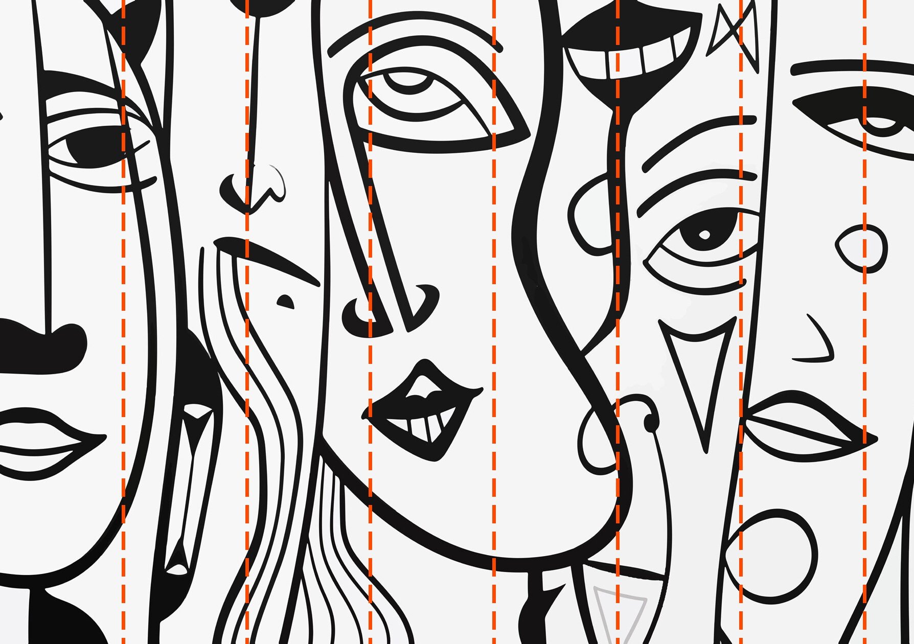 Fotomurales Dibujo de caras en blanco y negro