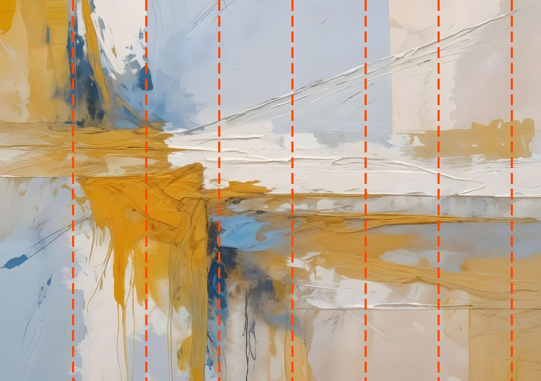 Tu papel pintado se preparará según las dimensiones que nos hayas facilitado durante el proceso de pedido. El lienzo se dividirá en cómodas secciones de hasta 50 cm de ancho cada una.