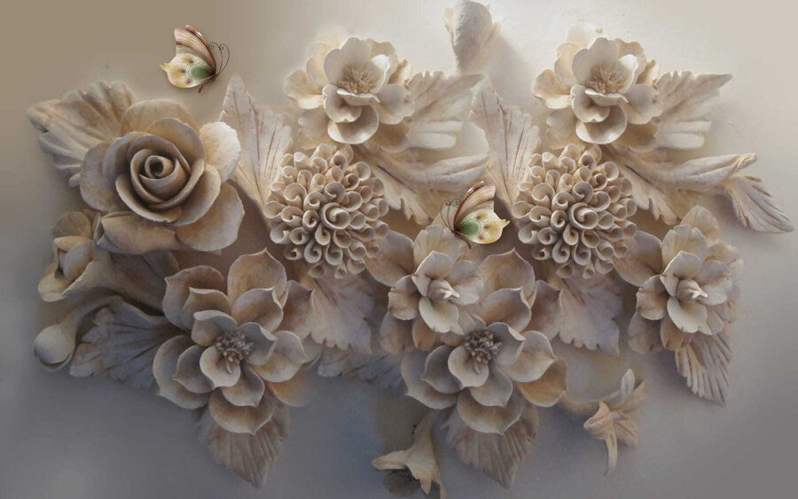 Fotomurales Elegantes flores con graciosas mariposas. (SKU: u16644)