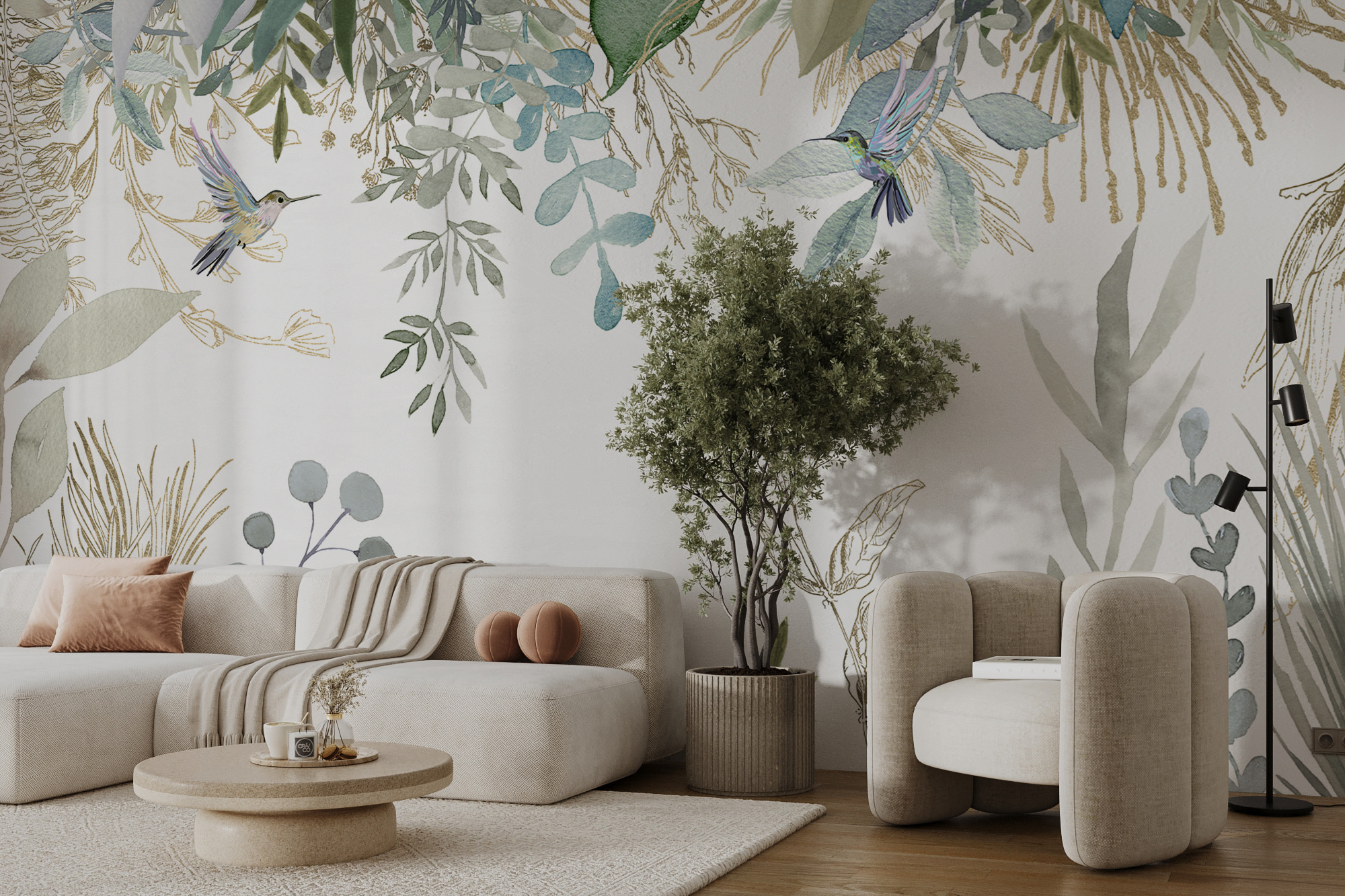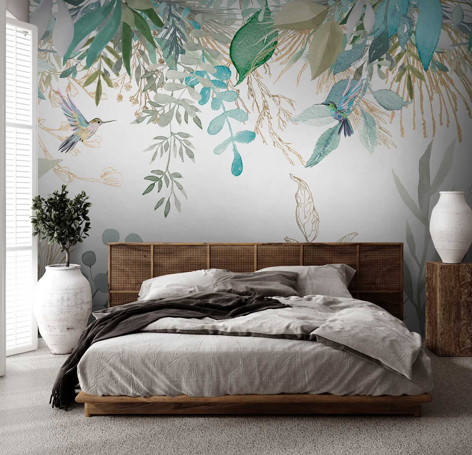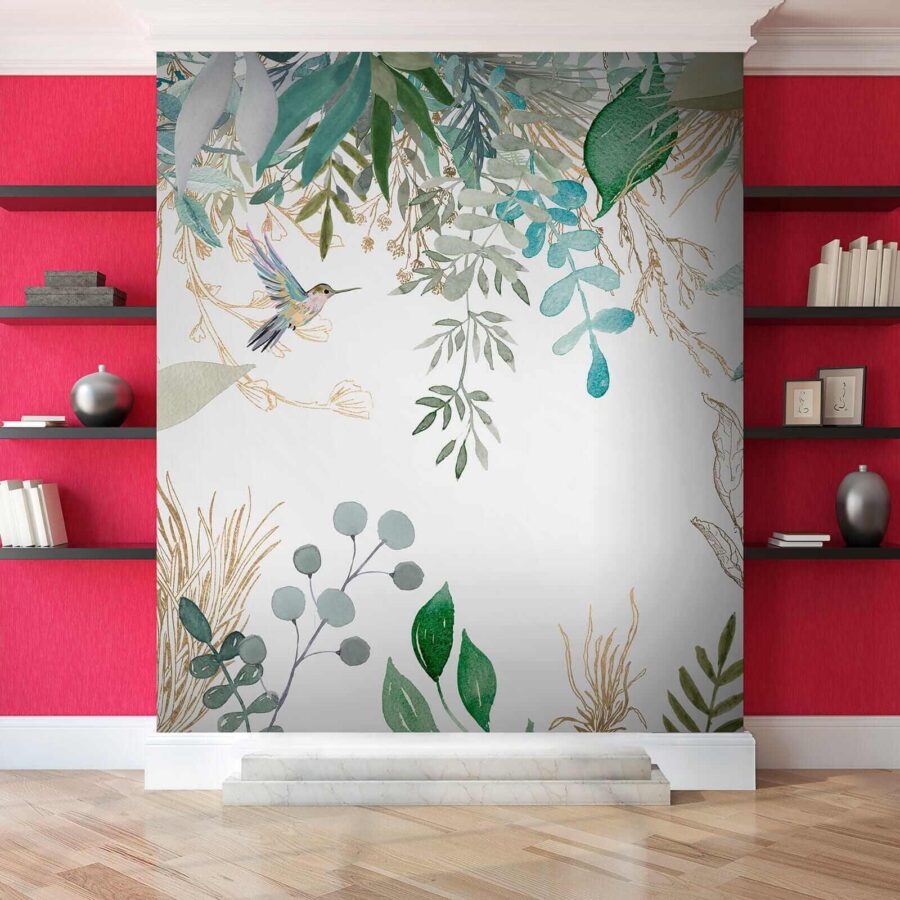 Imagínate llegar a casa y que todo tu estrés desaparezca. El mural “Colibríes en medio de un exuberante follaje” transforma cualquier habitación en un refugio sereno inspirado en la naturaleza. Es como tener tu propio trocito de selva tropical en el salón de tu casa. Los delicados colibríes revolotean entre el exuberante follaje, pintados en acuarelas de ensueño que harán cantar a tu corazón. Perfecto para los amantes de las flores, el follaje o la belleza de la naturaleza. Colócalo y observa cómo tu espacio de repente se siente vivo y mucho más vibrante. No es sólo un mural, es una escapada, unas minivacaciones, un recordatorio diario de la magia de la naturaleza. Y en serio, ¿quién no necesita un poco de eso?