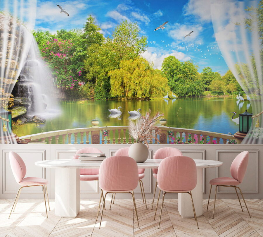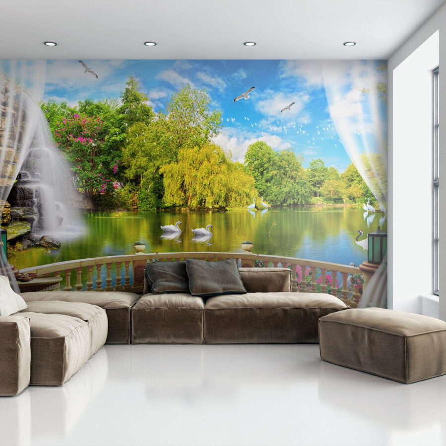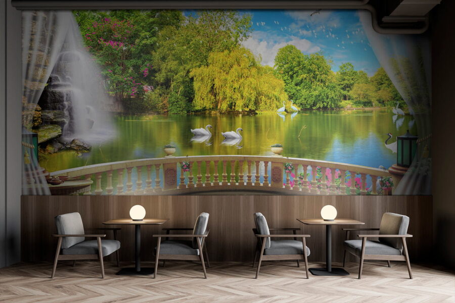 Transforme cualquier habitación en un oasis de tranquilidad con este encantador mural, «Vista de un estanque con pájaros y árboles». Imagínese tomando su café matutino y, de repente, el caos del mundo se desvanece: solo usted, aguas serenas y elegantes cisnes deslizándose por la superficie. Los verdes vibrantes y los azules vivos llevan la naturaleza directamente a sus paredes, haciendo que cada día se sienta como un tranquilo paseo junto al agua. Perfecto para un rincón acogedor o una sala de estar vibrante, este mural no es solo decoración; es un pequeño pedazo de paz que le susurra: «Respire, se lo merece». ¿No es hora de abrazar esas vibraciones relajantes?