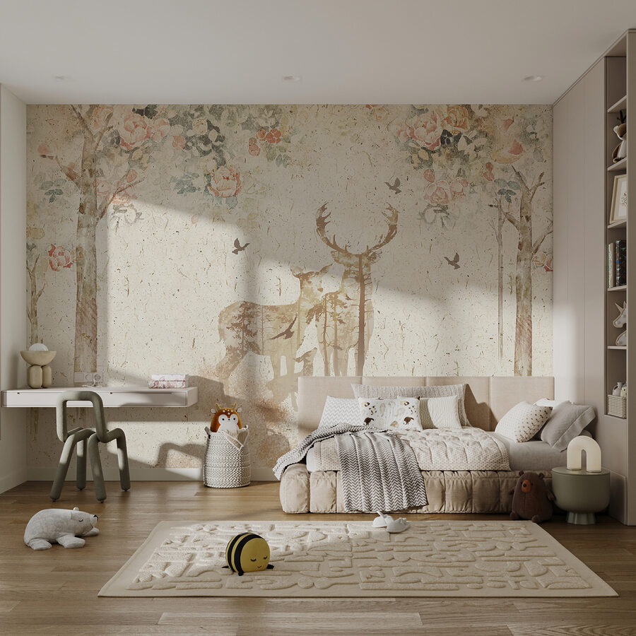 Imagínese tener una apacible escena forestal en su pared. El mural de pared “Pájaro en una baldosa” le transporta directamente a un bosque de ensueño donde los ciervos y los pájaros coexisten pacíficamente. Es como adentrarse en un cuento de hadas cada vez que entra en la habitación: perfecto para el santuario de un niño o un complemento encantador para cualquier espacio que necesite un toque de fantasía. Esas flores suaves y pastel y esos pájaros juguetones añaden una pizca de magia. No es sólo un papel pintado, es una historia que espera a ser contada, llevando la serenidad de la naturaleza a tu hogar. Mágico, ¿verdad? 🌸🦌🌿