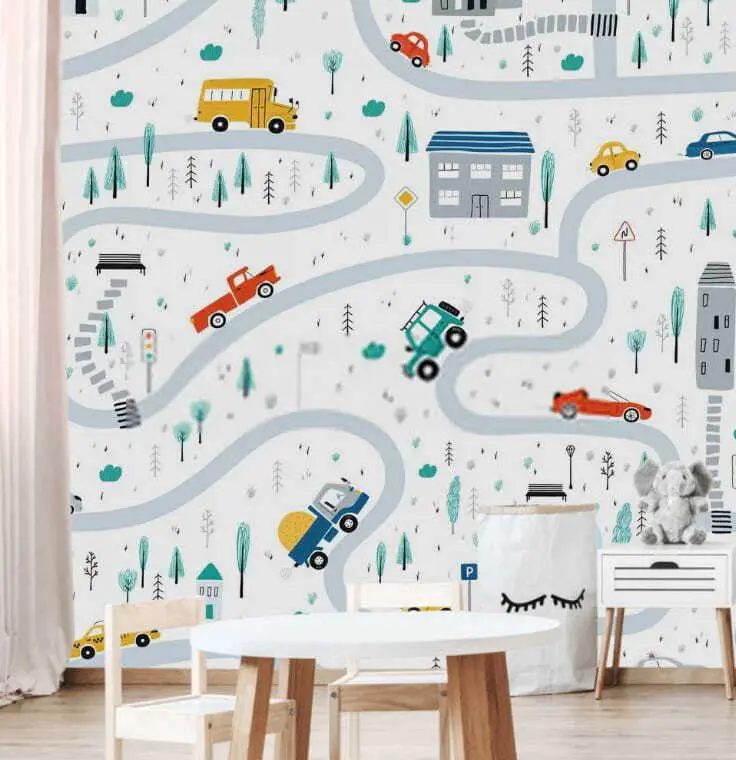¿Tienes un hijo al que le encantan los coches y los edificios? Este “Mapa mural de coches y edificios” es un sueño. Imagínatelo: carreteras llenas de vida serpenteando por toda la pared, coches de colores circulando a toda velocidad y encantadores edificios salpicando la escena. Es como vivir en un paisaje urbano en miniatura. Este mural ilumina la habitación de cualquier niño y convierte las paredes lisas en divertidas aventuras. Perfecto para contar cuentos o despertar la imaginación de los más pequeños: ¡piensa en los cuentos que se contarán a la hora de dormir! Además, los colores suaves y los caprichosos dibujos hacen que el espacio resulte acogedor y divertido. No es sólo un mural; es una invitación a explorar, soñar y jugar cada día.