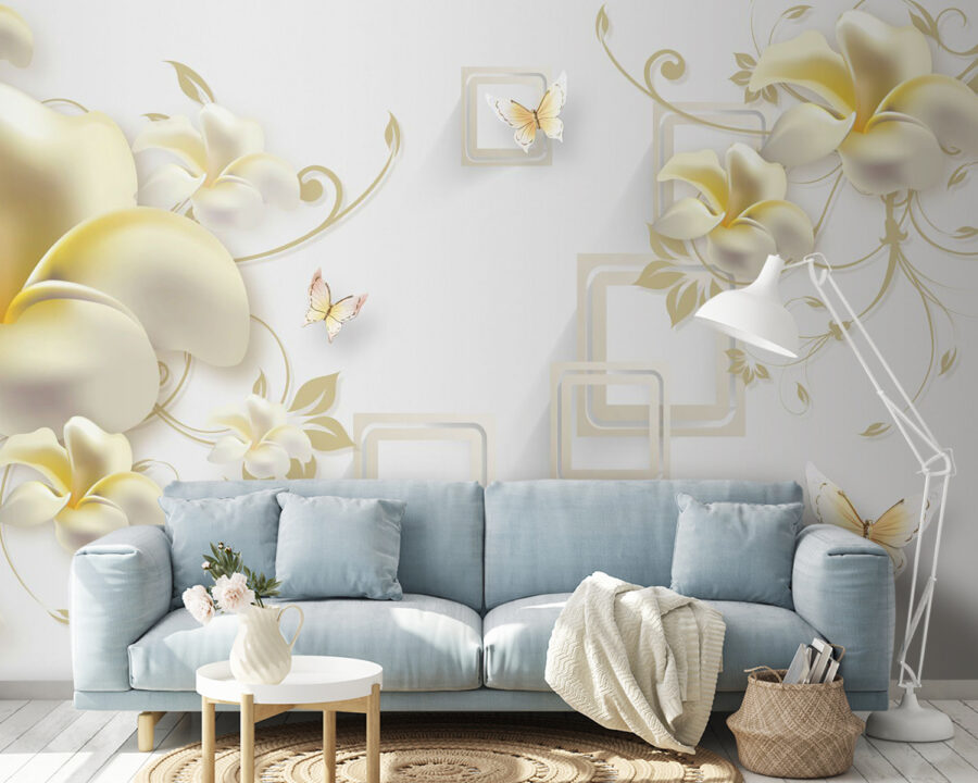 Transforma tu espacio en un jardín sereno con este encantador mural de pared con delicadas flores y mariposas revoloteando. Imagina entrar en una habitación que te envuelve como una suave brisa primaveral, delicada y revitalizante. Las flores de color crema envuelven las paredes en un acogedor abrazo, mientras que las mariposas parecen bailar alegremente, añadiendo el toque justo de fantasía. Es como tener un jardín secreto donde cada mirada te hace sonreír. Perfecto para añadir un toque de encanto al salón o un ambiente de ensueño al dormitorio. ¿Quién no querría eso?