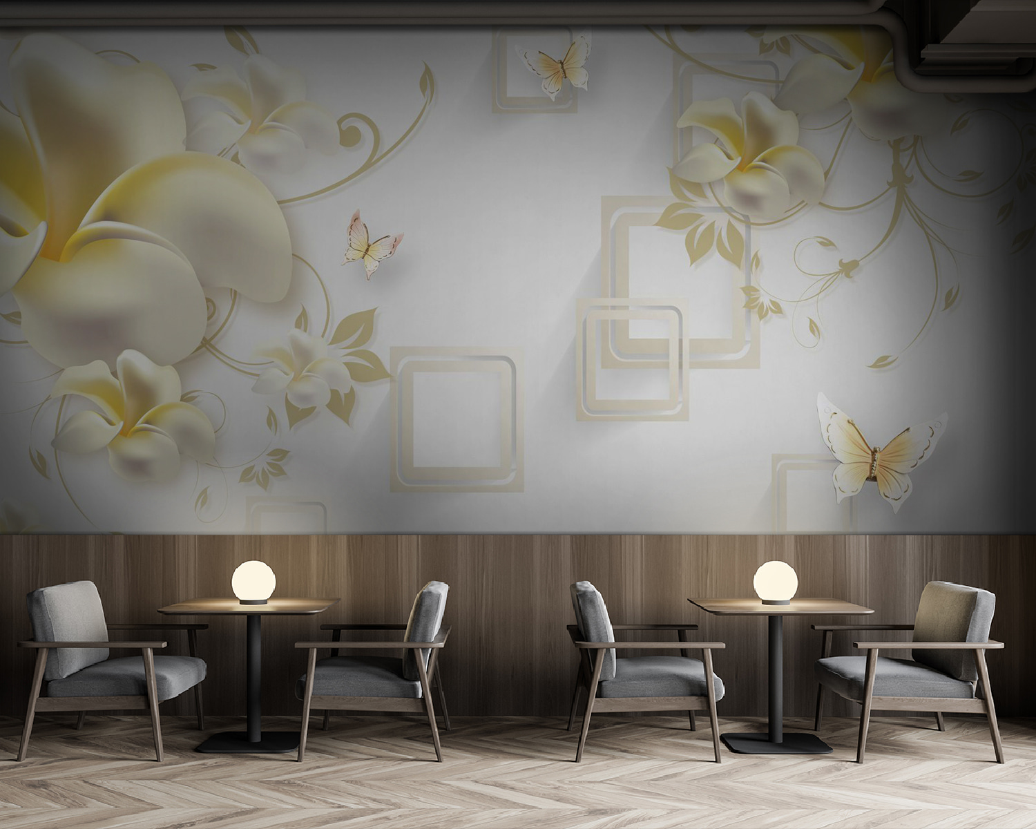 Transforma tu espacio en un jardín sereno con este encantador mural de pared con delicadas flores y mariposas revoloteando. Imagina entrar en una habitación que te envuelve como una suave brisa primaveral, delicada y revitalizante. Las flores de color crema envuelven las paredes en un acogedor abrazo, mientras que las mariposas parecen bailar alegremente, añadiendo el toque justo de fantasía. Es como tener un jardín secreto donde cada mirada te hace sonreír. Perfecto para añadir un toque de encanto al salón o un ambiente de ensueño al dormitorio. ¿Quién no querría eso?