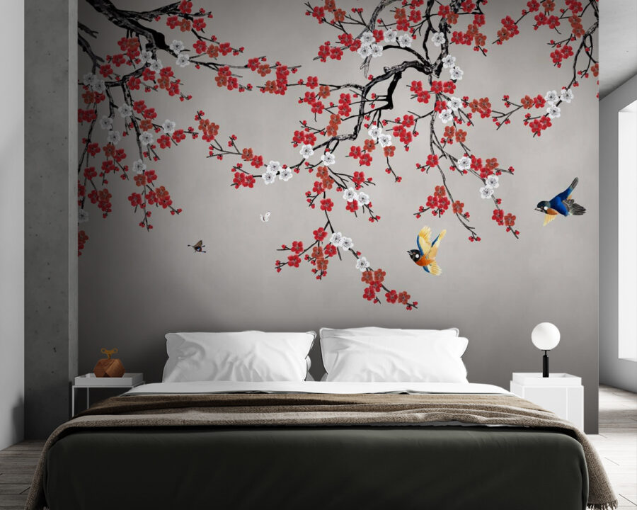 Transforme su espacio con este encantador mural de pared con vibrantes pájaros planeando entre delicadas flores de cerezo. Imagina despertar cada día rodeado de la belleza de la naturaleza, mientras estos amigos emplumados planean sin esfuerzo por el aire. El suave fondo contrasta a la perfección con los atrevidos tonos, aportando vida y energía a cualquier habitación. Es como tener un trocito de primavera en la pared durante todo el año. Imagínese acogedoras veladas en las que el mural sirve de impresionante telón de fondo para reuniones o serenas mañanas con una taza de café en la mano. Este mural no sólo decora; inspira historias, sueños y buenas vibraciones. Ya sea en un dormitorio, en el salón o incluso en un rincón juguetón, invita a la calidez y a la alegría. ¿No sería estupendo simplemente sentarse y empaparse de la dichosa vista?