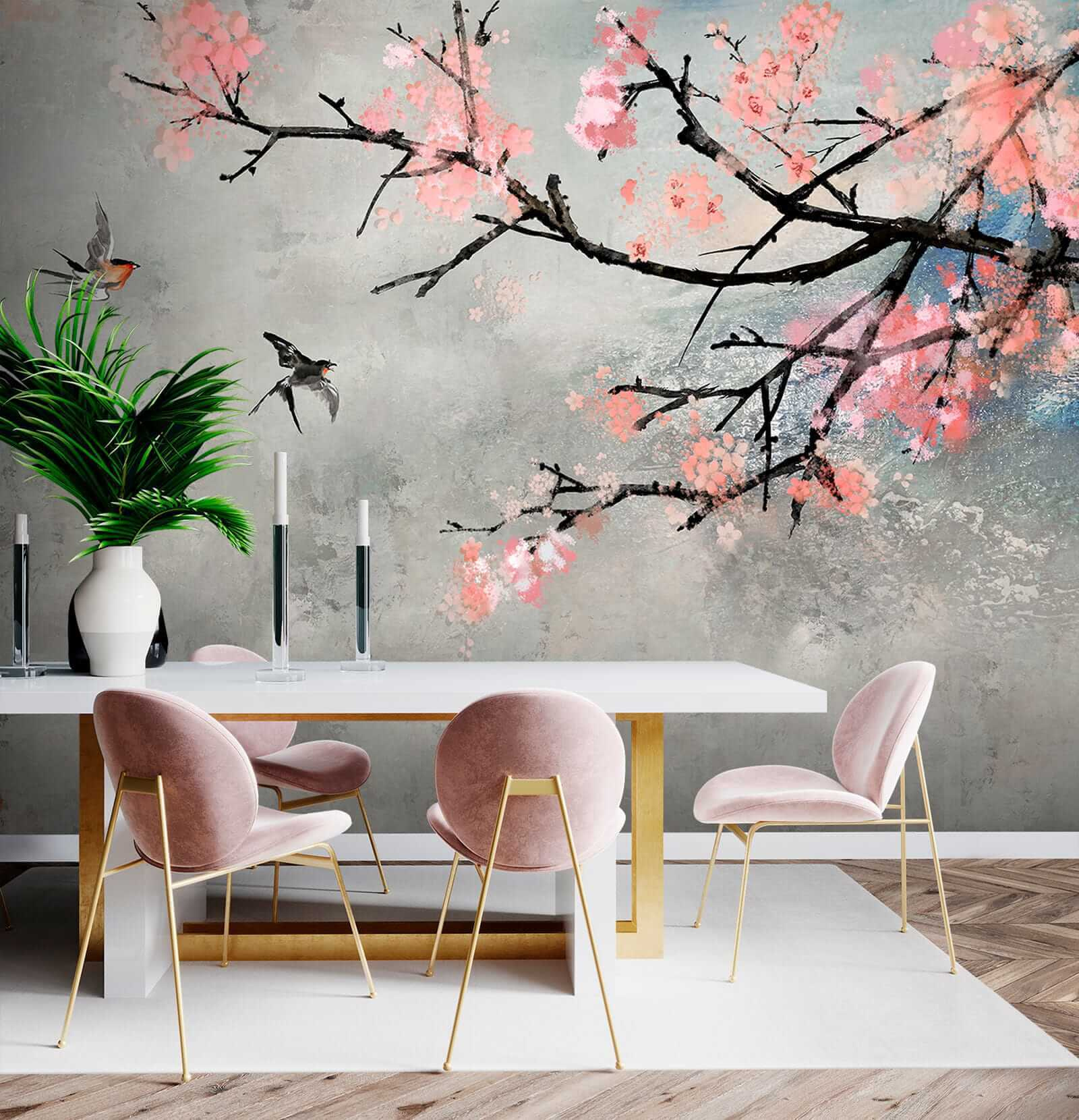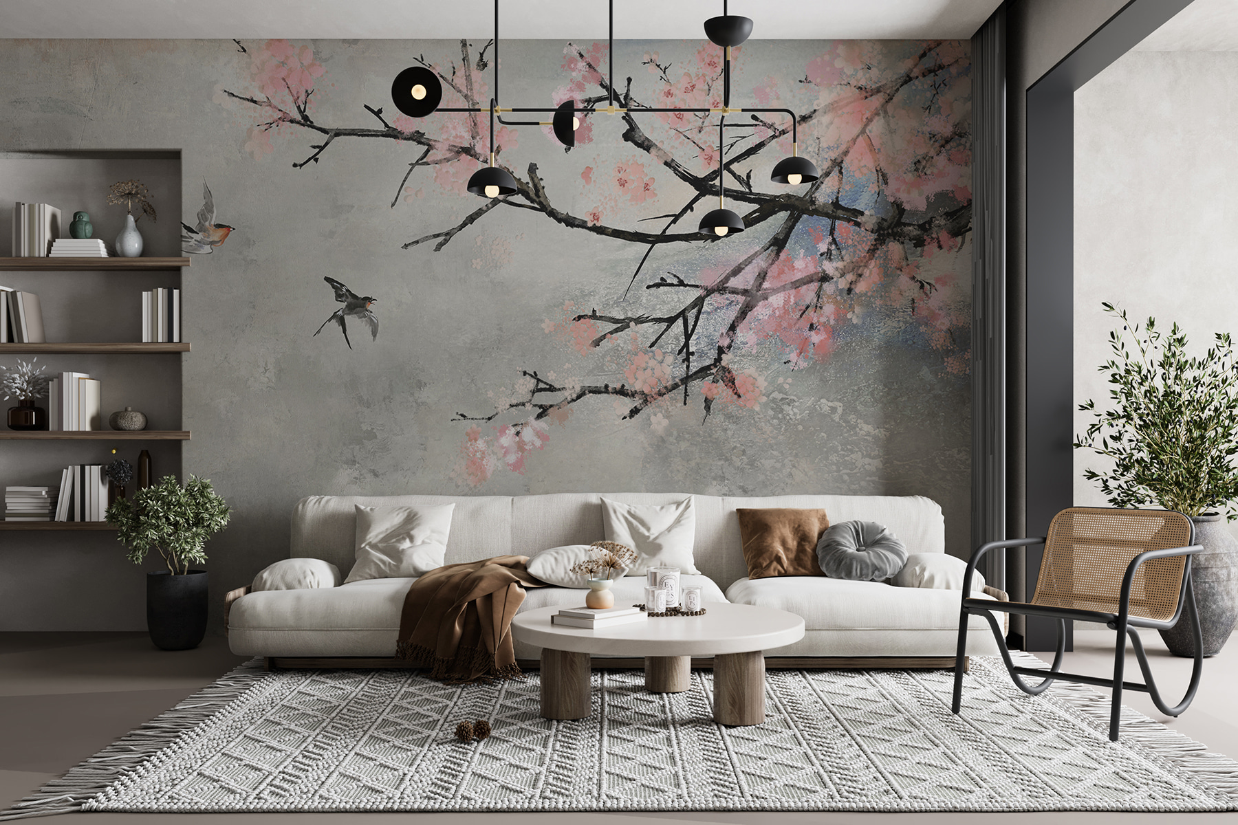 Es como tener un día de primavera perpetuo en la pared, con esas delicadas flores rosas y las elegantes ramas. Imagínese tomando el té, sintiéndose inspirado y casi oyendo el suave aleteo de las alas. Es perfecto para un rincón de lectura o un rincón zen. Además, tiene ese toque mágico: una pieza de arte que se siente viva y provoca una sonrisa cada vez que se ve. Tanto si busca la calma como la creatividad, este mural es su billete para una hermosa escapada.