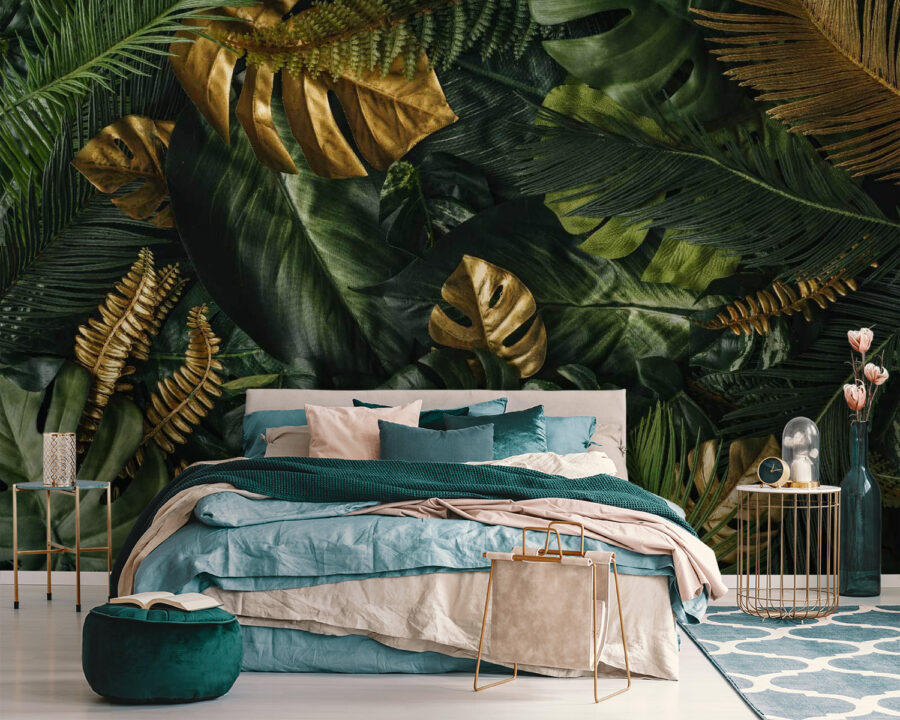 Transforme una pared aburrida en un exuberante paraíso tropical con este impresionante mural de hojas vibrantes en tonos verdes intensos. Imagínese entrar en su casa y sentir al instante que se encuentra en un sereno refugio selvático. Cada hoja parece susurrar secretos de la naturaleza, invitándote a desconectar y relajarte. Los amigos querrán pasar el rato sólo para empaparse de ese ambiente refrescante. Perfecto para una acogedora sala de estar o un tranquilo dormitorio, este mural aporta un toque de aire libre en el interior, incluso podría olvidarse del trabajo por un segundo. Imagínatelo: tomando una copa, con tus plantas favoritas como telón de fondo. ¿Quién diría que una pared podría sentirse tan viva?