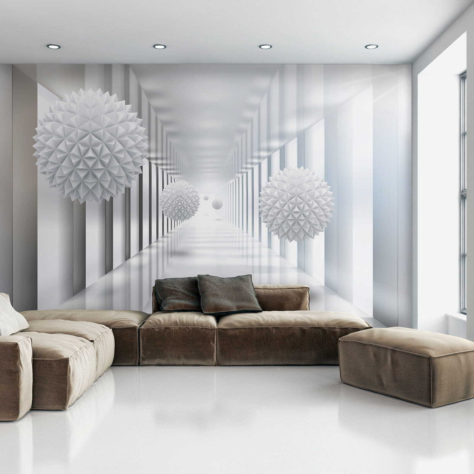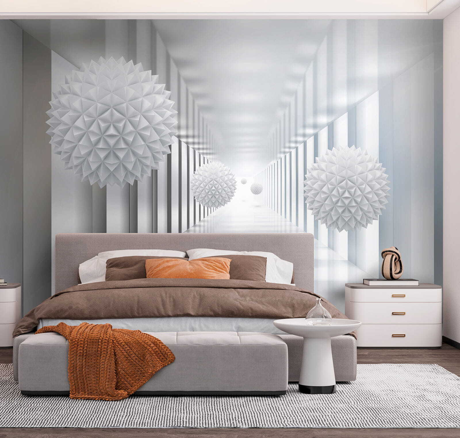 Imagine entrar en un espacio futurista y sereno al mismo tiempo. El “Mural Esfera Blanca con Triángulos” hace exactamente eso: convierte cualquier habitación en una maravilla moderna. Tiene estas geniales esferas blancas que flotan como si estuvieran sacadas de una película de ciencia ficción, con intrincados patrones triangulares que atrapan la luz y juegan con ella. Perfecto para los amantes de la decoración única y llamativa. Es casi como tener una obra de arte moderno en la pared. No es un mural cualquiera, es todo un estado de ánimo. Si entras en una habitación con este mural, te sentirás inmediatamente más sofisticado, como si acabaras de entrar en una galería de lujo o en un elegante loft del centro. La sensación dimensional hace que parezca que la pared es eterna… genial, ¿verdad? Ideal para impresionar a tus invitados o para animarte a ti mismo cada vez que pases por delante.