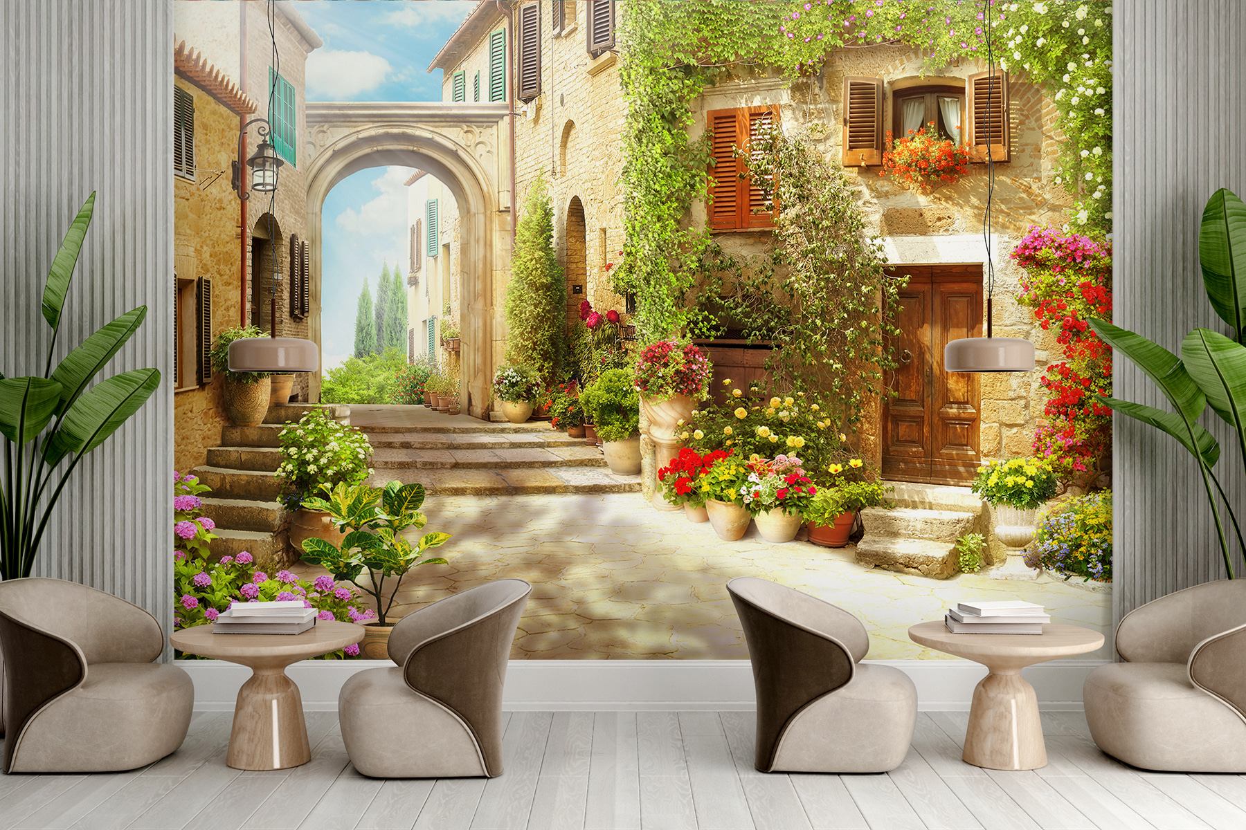 Transforme cualquier habitación en una encantadora escapada con este encantador mural de pared: una vibrante calle repleta de flores. Imagínatelo: caminos bañados por el sol flanqueados por flores de colores y arquitectura rústica. Es como entrar en una escena de cuento donde cada mirada trae un nuevo descubrimiento. Los tonos suaves y los detalles llenos de vida pueden alegrar un espacio aburrido, dándole un aire fresco y acogedor. Puede que tus amigos te pregunten si lo encontraste en un viaje a Italia. Ya sea en un rincón acogedor o en un salón animado, este mural añade ese toque perfecto de calidez y alegría, ideal para esos días en los que se necesita un poco de evasión.