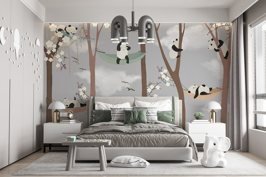¿No es adorable este mural de “Dibujos animados de un panda”? En serio, basta con mirar a esos pandas descansando en hamacas entre los árboles: ¡es como una escena de un sueño caprichoso! Perfecto para una habitación infantil, este mural aporta una sensación de calma y alegría. Imagina cuentos para dormir bajo esta obra de arte… esos pequeños pandas quedándose dormidos podrían hacer lo mismo con tu pequeño. Y tiene esos colores suaves y encantadores, suaves para los ojos pero lo suficientemente vibrantes como para captar la imaginación. Tanto si estás decorando una habitación de juegos como si estás creando un rincón tranquilo, este mural te garantiza una pizca de encanto y un cubo de sonrisas. Adelante, ¡deja que los pandas hagan su magia!